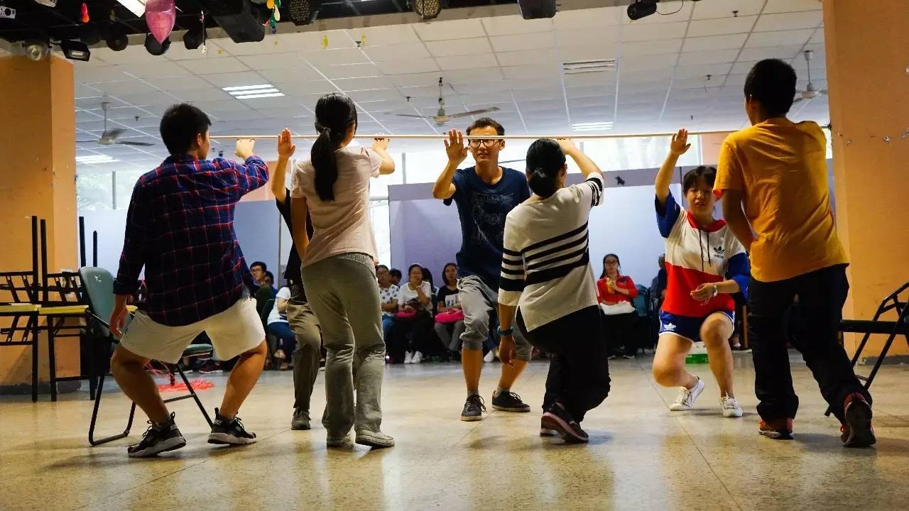 第二项“教练说”活动旨在提高参与者的注意力,需要仔细听取教练的口令。三轮“教练”说后,不幸掉进语言陷阱的同学为大家合唱了东大校歌,将活动推向了第一个高潮。而暖场部分也就此结束。