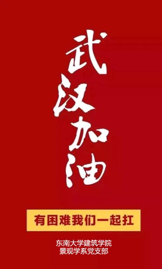 连日来,“新型冠状病毒感染肺炎”疫情正在蔓延,武汉以及全国各地医务人员为打赢这场防疫防控阻击战奋斗在最前线。疫情的发展和武汉同胞的安危牵动着万博manbetx官网 景观学系全体师生的心!