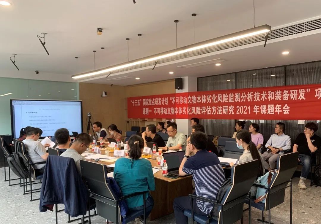 2021年5月26日-28日,“十三五”国家重点研发计划项目“不可移动文物本体劣化风险监测分析技术和装备研发”项目中期检查会暨“不可移动文物本体劣化风险评估方法研究”标准研讨会在江苏南京顺利召开。“十三五”国家重点研发计划项目“不可移动文物本体劣化风险监测分析技术和装备研发”由故宫博物院王旭东院长担任项目负责人,故宫博物院、敦煌研究院、东南大学、西北大学、浙江大学、兰州大学、机械工业仪器仪表综合技术经济研究所、天津大学、重庆声光电智联电子有限公司和西安工程大学共十家单位参与。万博manbetx官网 李永辉副教授担任课题一“不可移动文物本体劣化风险评估方法研究”的课题负责人。课题一聚焦于不可移动文物本体劣化监测方法、评估方法和监测技术的适宜性研究,旨在提出古建筑、石窟寺、土遗址三类不可移动文物本体劣化风险评估方法、监测要求和标准等,服务于三类不可移动文物本体劣化风险监测、技术装备研发及系统解决方案的建立。敦煌研究院陈港泉研究馆员、孙胜利副研究馆员等,浙江大学董亚波副教授,麦积山石窟艺术研究所岳永强副所长,故宫博物院张小古副研究馆员、程枭翀副研究馆员等,兰州大学原鹏博副教授等,东南大学建筑设计研究院胡石副院长、穆保岗副教授等,西北大学沈云霞副教授等各课题负责人及研究骨干参加了本次会议。5月27日,参会人员对课题一提出的“古建筑本体劣化风险评估技术导则”“石窟寺本体劣化风险评估技术导则”及“土遗址本体劣化风险评估技术导则”三个标准草案进行了研讨。5月28日,课题一负责人李永辉副教授向项目组汇报了课题组的研究进展、经费执行及课题组织管理情况。项目组成员充分肯定了课题一在中期前所取得的各项进展和成果,并对未来工作的开展提出了宝贵建议,明确了下一阶段的工作计划。本次会议圆满结束。