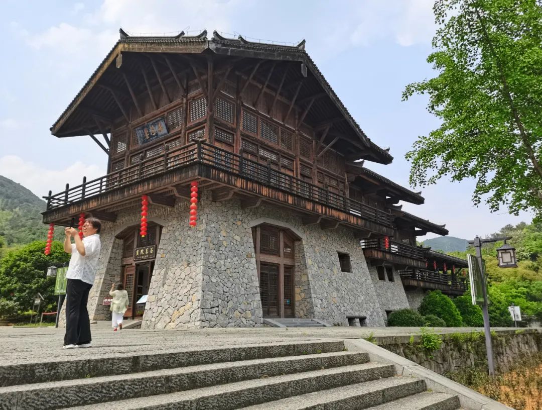 穿越璀璨的历史长空,回到1250年前的唐朝大历五年(公元770年),顾渚山虎头岩下一片繁忙。众多制茶师傅挥汗如雨,为朝廷清明御茶宴赶制紫笋贡茶;同时,数以千计的工匠在大兴土木,建造御用制茶作坊。因为陆羽向皇帝推荐顾渚紫笋茶被圣上釆纳,于是,史上第一座大型皇家茶坊大唐贡茶院在此诞生。不久后,茶圣陆羽在湖州完成了举世首部《茶经》巨著,此地名声大噪,成为华夏茶文化中心。奈何世事沧桑,茶院几度兴废,遗迹湮灭殆尽。今逢盛世,政通人和,乃重建大唐贡茶院以弘扬国粹。设计招标时,东南大学郑光复教授之方案技压群雄,一举中标。之后,郑教授精心设计、现场督造、事必躬亲,举四年之力,鸿图巨制终于完成。2009年,一处唐风浓郁、气势恢宏的大唐贡茶院重现世间,成为著名的浙北胜景。是年11月,郑教授参加大唐贡茶院竣工验收,回到南京,突发心梗猝然辞世。可惜天妒英才,不假以年,大唐贡茶院成为郑教授的遗世绝唱。郑光复先生是知名建筑教育家、建筑理论家,也是卓有建树的建筑师。1962年,我考入南京工学院(后改称东南大学)建筑系,有幸成为他的学生。那时的郑先生是青年教师中的翘楚,英姿勃发、才华横溢,深受学生爱戴。他治学严谨,授业有方,他善待学生,宽严相济,是我们的良师益友。近六十年过去了,老同学相聚,回忆大学生涯,郑先生总是永恒的话题,足见他的人格魅力。2021年5月10日,我们一行十二人,从南京、杭州、济南相约而至,来到大唐贡茶院,其中八位是老同窗,当年曾受教于郑光复先生,虽年逾古稀,仍不辞劳顿而来,专为瞻仰恩师的大作。我们心怀崇敬,以学生的身份,以建筑师的眼光,从专业的角度客观地审视、观赏、评价恩师的作品,揣摩他的设计思路和创作灵感。现在,请跟随我的脚步,去品鉴大唐贡茶院的建筑,探究它的创作者郑光复先生深邃的设计思想和闪光的灵感。此刻院区内正播放着古筝乐曲《梅花三弄》,悠远飘逸的旋律,令人陶醉,古建筑与古乐曲和谐共鸣,仿佛眼前浮现出品茗赋诗、焚香抚琴的场景。拾级而上,迎面而来的是大唐贡茶院的正门。它雄踞于高台之上,坐北朝南,是一幢悬山屋顶的五开间过厅,用作入囗售票、验票。居中三间大门洞开,左右各1/2开间为粉白墙面。山墙有石砌扶壁止于门额高度,收分较大,极显稳重;木构架为穿斗式与叠梁式混用,髹焦茶色清水漆。前后挑檐深阔,釆用三叠挑枋承托出檐。悬山屋檐出挑深远,博风板宽厚,端部略收减,山尖的木悬鱼下端为扇状蕉叶纹。屋面瓦做,采用小青瓦(蝴蝶瓦),有正脊、垂脊。所有做法均为江浙民间传统做法,造型朴实简洁,地域性强,极具亲和力。深远的出檐呈现出浓郁的大唐建筑风格。