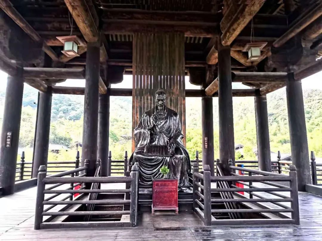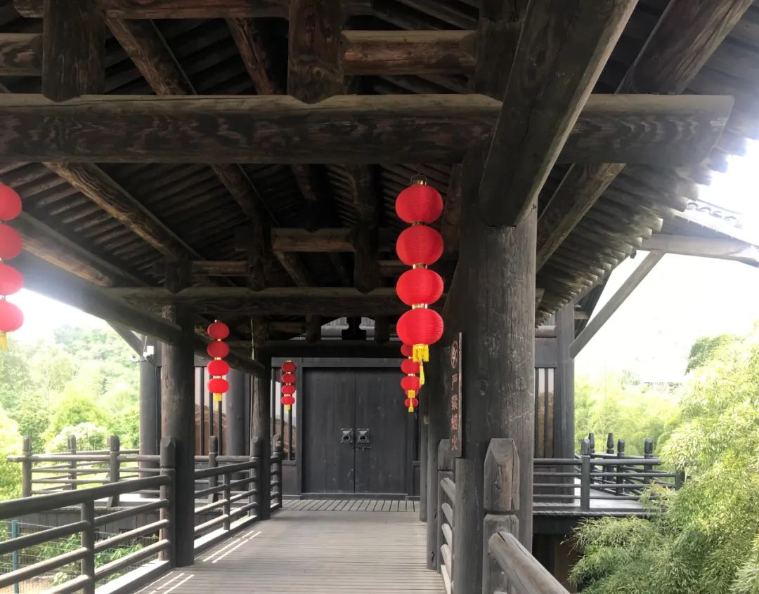 国内唐代木构建筑遗存只有四处,均为宗教殿堂,而且都在山西。对唐代建筑的研究,也仅限于此。在我看来,吉祥寺大殿的造型,基本参照山西五台佛光寺大殿(建于唐大中十一年,即公元857年),既形似又神似,中规中矩,古色古香,体现了唐代庙宇的恢宏气势。吉祥寺大殿建为两层,底层用于展示贡茶院兴衰史,采用石砌台礅式外墙,构图上形成大殿的基座。二层为文殊殿,面阔五间,居中三间,设木板殿门,两边梢间,做直棂窗牗;大殿进深三间,其中一间为前廊;二层殿外有宽阔的月台,架空于地面之上。大殿采用单檐庑殿式屋顶,屋面平缓,挑檐深远,深檐出挑达4.6米,郑先生确实是大手笔,出檐如此深阔,近看似乎夸张,远观却恰如其分。檐下铺作以插拱取代斗拱用于承载檐重。从南面看去,大殿坐落于二层月台之上,庄严肃穆,寂静悠然。我认为郑先生的决策是对的,有范可依就一丝不苟的严格遵循,切忌随意发挥,这就是治学严谨。如“创新”出一个似是而非的吉祥寺,充作唐风古建,只会贻笑大方。我最喜欢、最推崇、最佩服的是郑光复先生设计的大唐贡茶院的东廊和西廊。它们靠近大唐贡茶院的东西边界,是从南到北连接所有建筑物的风雨长廊。郑先生把它设计成空中走廊,游人在苍松翠竹的树梢间穿行,又适度控制走廊高度与各建筑二层回廊相衔接。走廊采用两坡顶小青瓦屋面,出檐较大。干栏式走廊利用圆柱将走廊架空于山体之上,不破坏原始地形和植被,也便于调整廊道的标高。这种创意,受条件约束较少,给设计者提供了较大的发挥余地。看得出,郑先生空中走廊的创意应是来自浙江河姆渡文化的干栏式建筑遗址。我在西廊漫步,东望茶院景致,品味大唐神韵,西眺山外青山,极目楚天风云。清风徐来,树影婆娑,暖阳普照,翠竹斑驳,怎生一个爽字了得!风雨走廊或直或斜,或平或坡,或宽或窄,或曲或折。或重檐相叠,或高低错落。有几处断头相错,露出走廊的横截面,形成廊端的悬山立面。空间变幻多端,却是井然有序,这就是水平,赞叹郑先生高超的空间处理能力。他的奇思妙想,带给游客无穷的乐趣。