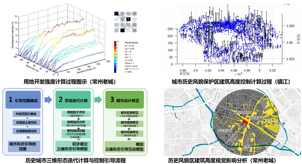运用多因子交互算法建立了历史城镇空间迭代模型,通过数字化推演仿真方法确定了城市天际线、视线廊道和街区高度、密度、强度控制的阈值范围;根据历史街区保护和发展要求,在上述阈值范围内确定科学控制指标,建立“街区-建筑”动态价值和结构性能评估模型,确定了街区内建筑遗产保护对象及分类指导的保护方式。