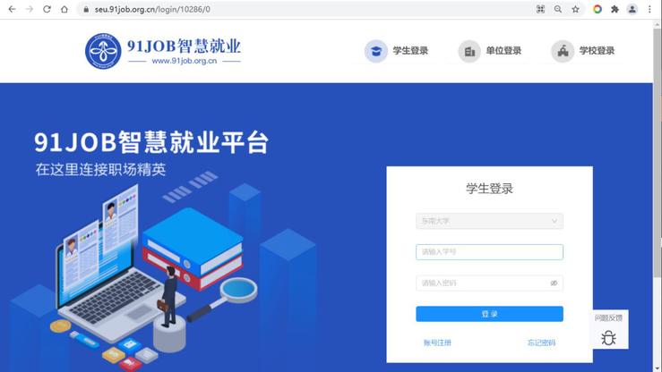 当年度毕业的毕业生,应在规定时间内进行当年度的毕业生生源上报,这是毕业生进行就业派遣的重要依据。学生登录东南大学就业信息网//seu.91job.org.cn,点击学生登录,进入登录界面。