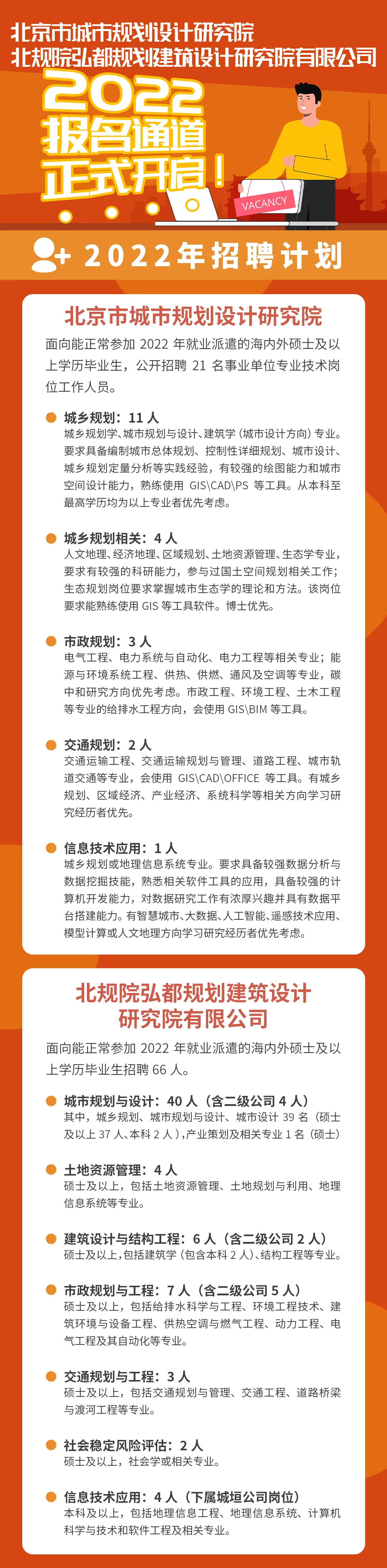 北京市城市规划设计研究院及北规院弘都规划建筑设计研究院有限公司2022招聘