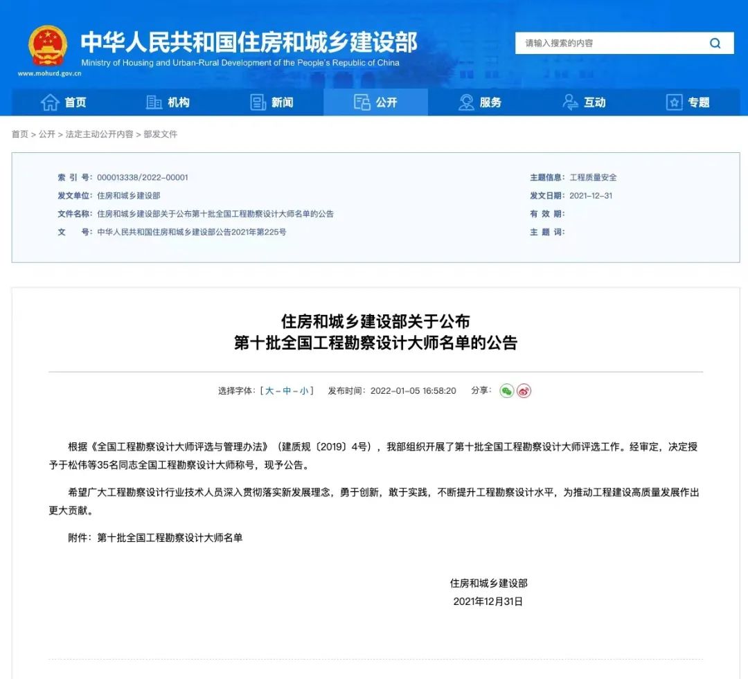 全国工程勘察设计大师,是中国工程勘察设计行业国家级荣誉称号,代表了中国勘察设计行业的最高水平。