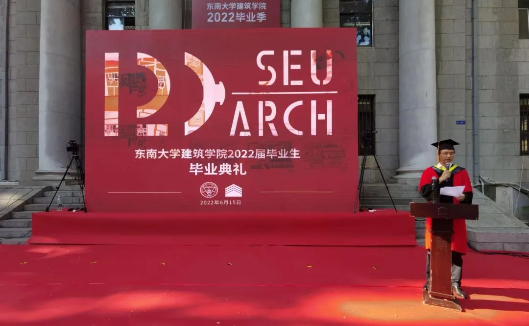 在嘹亮的国歌声中,毕业典礼正式开始。万博manbetx官网 院长张彤教授发表致辞。他首先祝贺同学们在学院取得的非凡成绩,并通过解析“东南学派”作为“一个交融包蓄的时空”“一派固守本体的学统”和“一种审视自省的实践”的深刻内涵,勉励毕业生们把自己理解的东南学派的精神和价值带到自己将要去的地方,以自己的方式,为“东南学派”增添新的诠释和价值。“不管你们今天取得的是什么学位,不管你们是升学还是就业,从毕业之时起,你们已经具有了身份,成为了“东南学人”这个群体的一部分。”最后,张院长再次祝贺2022届同学们圆满毕业,祝福毕业生们心怀光明,前程似锦。