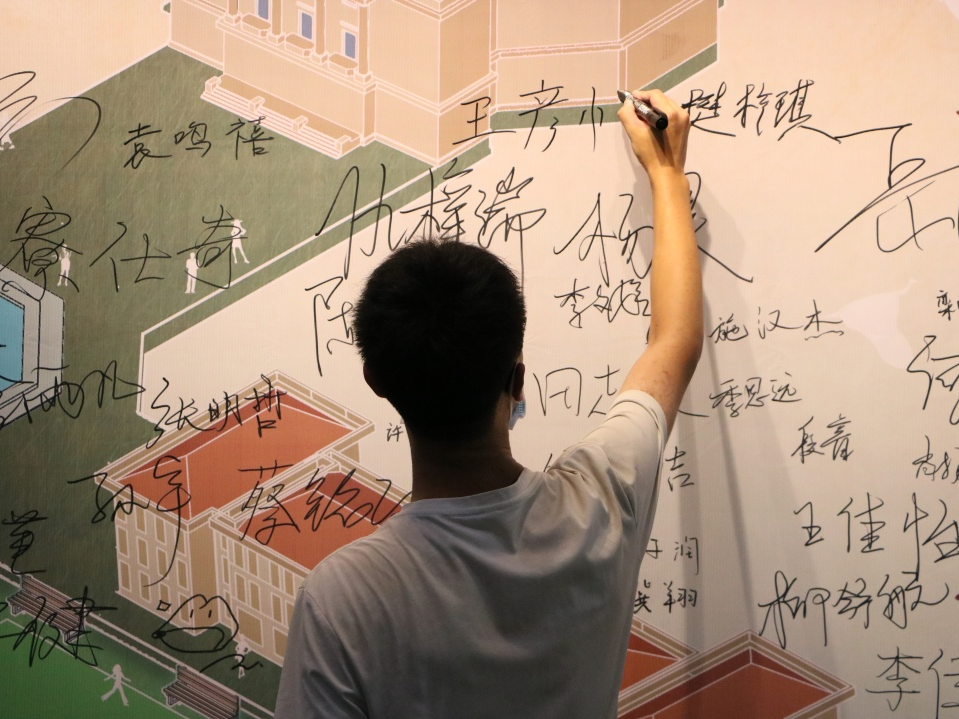 志愿者们引导新生办理报到手续,为新生送上学校和学院精心准备的迎新礼包。新生们在签名墙上郑重签下自己的名字,留下来到万博manbetx官网 的第一张珍贵照片。