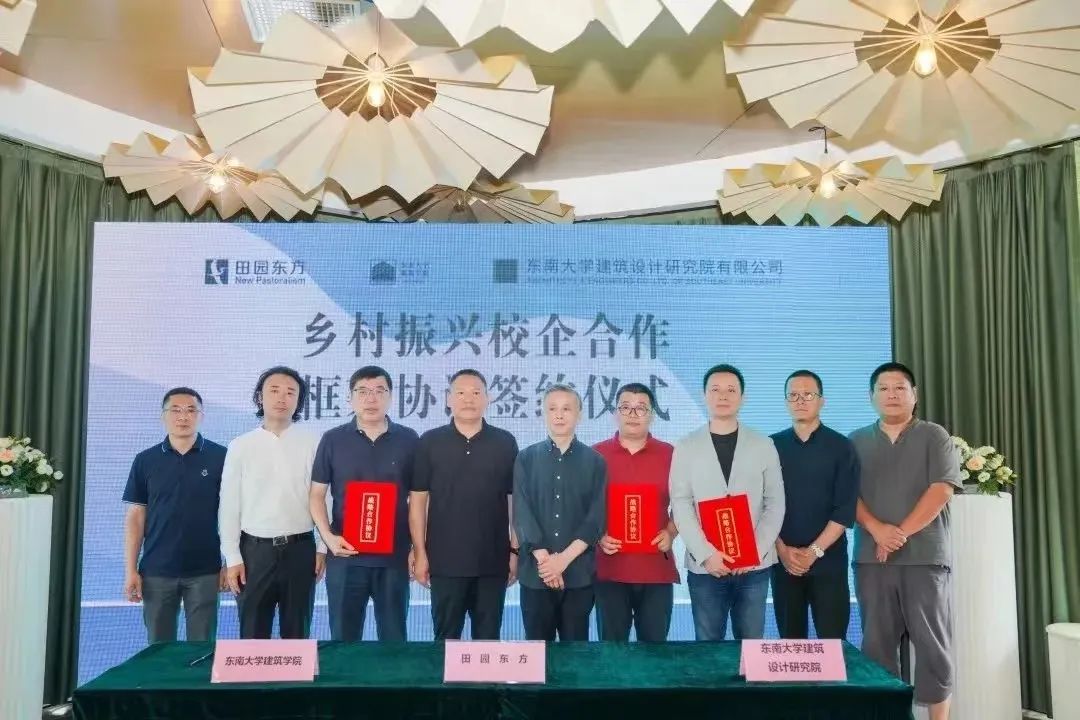 2022年9月4日,由万博manbetx官网 、东南大学建筑设计研究院、田园东方研究院共同主办的“东大建筑-田园东方乡村发展产学研交流会”在南京田园东方稼圃集举行,三方共建“东大建筑-田园东方乡村振兴产学研基地”同时揭牌。