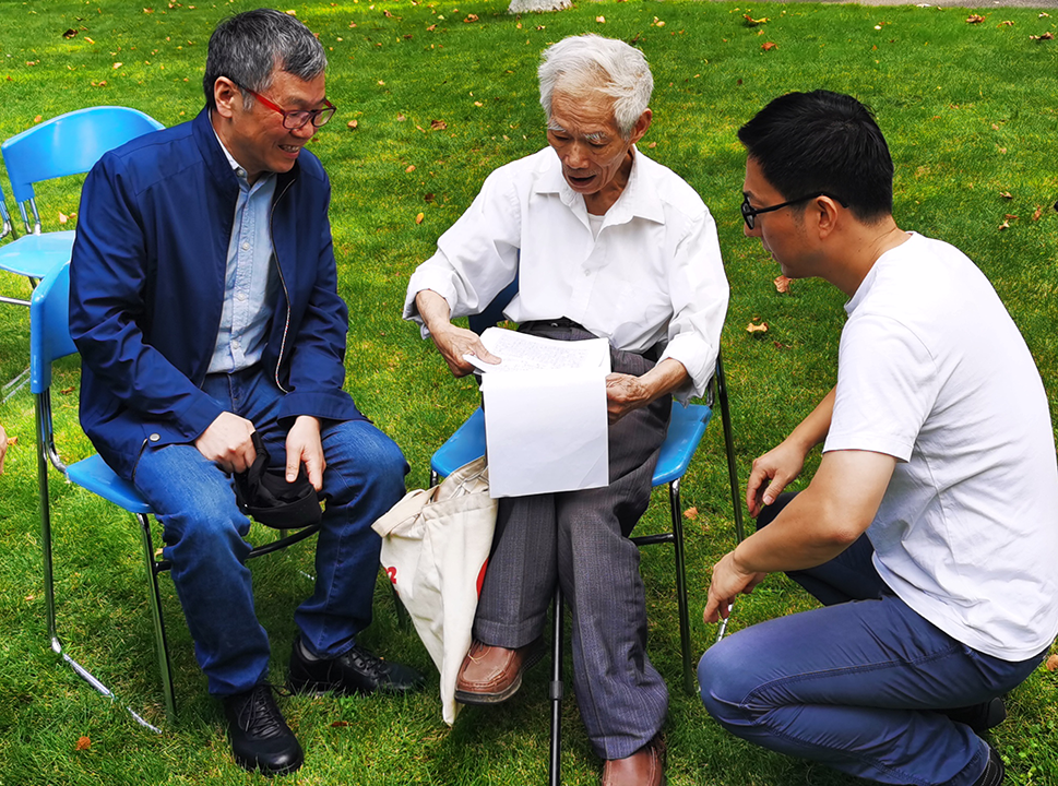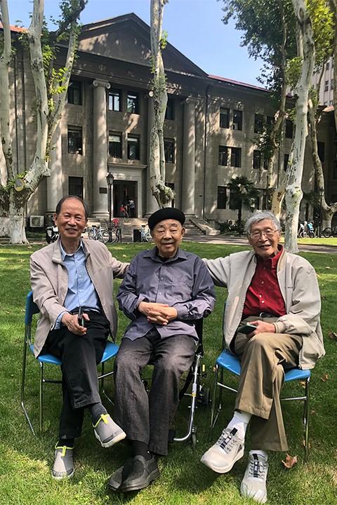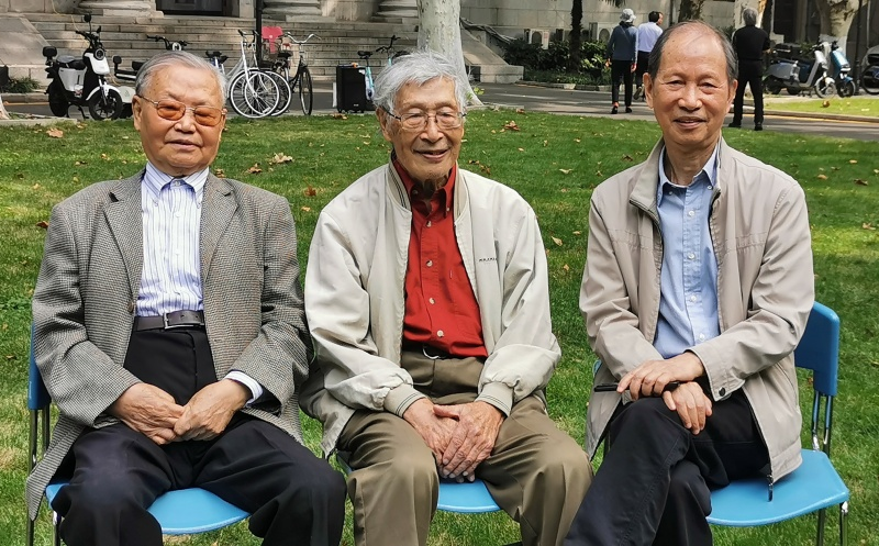 部分系所也同时拍摄了小全家福。合影之后,各位老师与许久未见面的钟训正院士、鲍家声教授、黎志涛教授、金允铨教授等进行了互动交流。