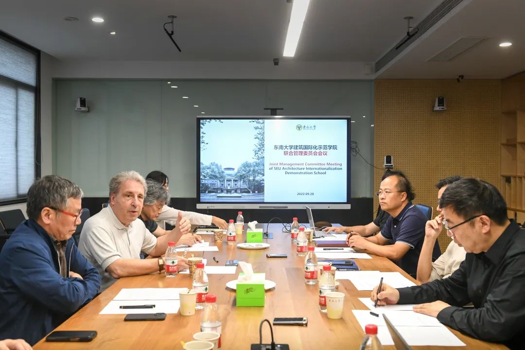 2022年9月28日下午,在全校展开教育思想大讨论,也是建院95周年之际,东南大学建筑国际化示范学院围绕“强化国际合作,将传统优势学科推向世界一流”这一主题召开了联合管理委员会会议。会议由建筑国际化示范学院外籍院长戴维·莱瑟巴罗主持,万博manbetx官网 院长张彤、万博manbetx官网 党委书记冷嘉伟、分管国际合作、本硕教学等方面事务的其他学院领导班子成员,以及建筑国际化示范学院的两名境外教授参加了本次会议。