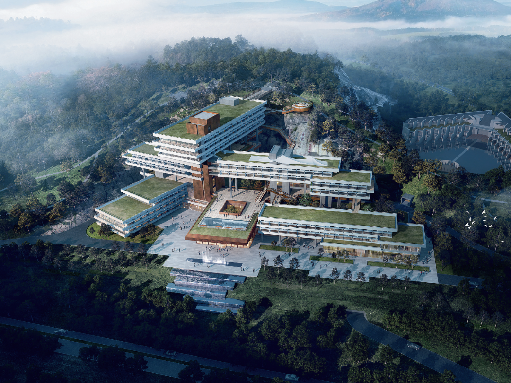徐州园博会宕口酒店位于徐州铜山区园博园的西南角的综合展馆区,场地内主要是采石开挖的宕口,地形起伏较大。宕口酒店远离城市中心,综合考虑酒店的度假性质定位,遵循“绿色、创新”的原则,结合建筑与宕口之间的联系,在最大程度利用山体景观资源的同时,为游客提供独特的入住体验 。