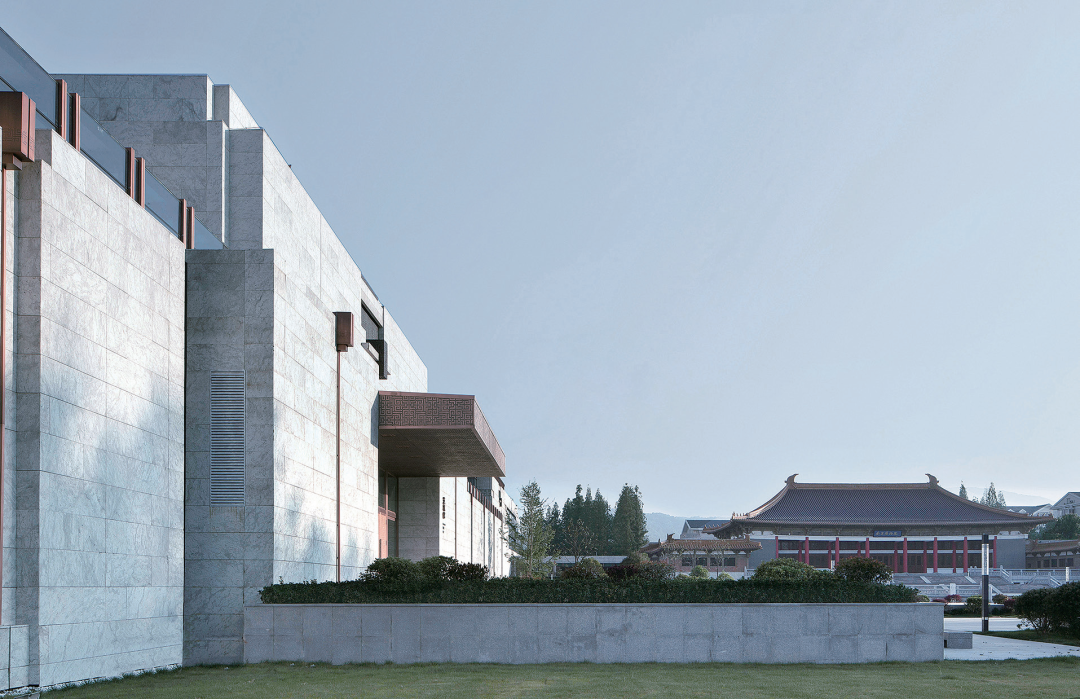 南京博物院位于中山门内,背倚紫金山,东邻古城墙。梁思成、杨廷宝、刘敦桢及徐敬直等中国老一代建筑大师先后主持或参与过项目的设计建设,建筑可称“经典”。另外它也承载着城市的历史记忆。程泰宁院士团队怀着尊重与敬畏之心,将新馆创作视为“南博”历史传统的延续。因此,改扩建方案的设计理念是:补白、整合、新构。