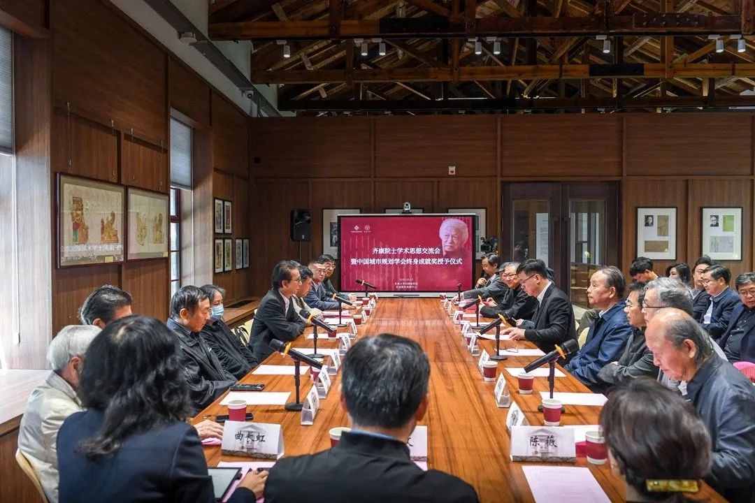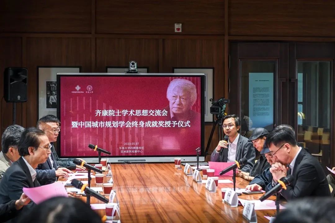 齐康先生,中国科学院院士,东南大学教授,杰出的建筑学家、城市规划学家和教育家,中国当代建筑与城市规划理论研究、创作实践与教育的重要开拓者与引领者。曾任中国建筑学会城市规划学术委员会(中国城市规划学会的前身)第二、三、四届委员,中国城市规划学会第一、二、三届理事会理事,第四、五届理事会特邀理事,1993年获中国城市规划学会第二批资深会员称号。齐康院士长期从事城市规划及建筑领域的科研、设计和教学工作。最早参与我国发达地区城市化的研究及相关的城市化与城市体系研究,在城市形态与城市设计研究领域取得卓越成就。齐院士主张进行地区性城市设计和建筑设计,首次提出了宜居环境整体建筑学理论思想。齐院士先后主持和参与完成了住建部、教育部和国家自然科学基金委等重点科研项目,科研成果获得教育部自然科学一等奖、教育部科技进步一、二、三等奖、建设部科技进步二等奖等科技奖励。齐院士主持的建筑创作和规划设计项目达200余项,包括南京雨花台革命烈士陵园、侵华日军南京大屠杀遇难同胞纪念馆(一期)、福建武夷山庄、中国共产党代表团南京梅园新村纪念馆、江苏淮安周恩来纪念馆、河南博物院等等,为后世留下了众多经典建筑遗产,很多作品在中国当代建筑与城市规划史上具有里程碑意义。齐康院士长期深耕教育,是中国建筑教育最为功勋卓著的教育家,为国家培养出一大批在城市规划、建筑及教育领域的杰出人才,其中包括中国工程院院士2名、中国科学院院士1名、普利兹克建筑奖获得者1名,以及多位全国建筑院校院长、系主任。齐康院士是我国当代城乡规划与建筑领域成就卓越的开拓者和重要引领者,在中国建筑学、城乡规划学科发展和建筑教育领域做出了开拓性和意义深远的巨大贡献,在国内外产生广泛、持久而深刻的学术影响。2022年中国城市规划学会第六次全国会员代表大会决定授予齐康院士中国城市规划学会终身成就奖。2023年5月7日,齐康院士学术思想交流会暨中国城市规划学会终身成就奖授予仪式在东南大学四牌楼校区亚洲建筑档案中心举行。仪式由中国城市规划学会和东南大学共同主办,万博manbetx官网 、东南大学建筑研究所和南京东南大学城市规划设计研究院有限公司共同承办。来自东南大学建筑设计研究院、深圳市建筑设计研究总院、南京市规划和自然资源局等单位的专家学者、齐先生的弟子们和亲属等参加了交流会和授奖仪式。
