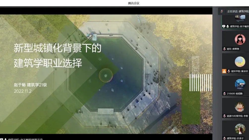 万博manbetx官网 发展对象、校优秀三好学生、国家奖学金获得者赵于畅同学为大家分享了建筑学专业过去的发展及未来的重点,并结合自己所参加过的实践项目,表达了希望自己可以不断投身建筑行业发展。积极分子、心理委员徐文康同学表示无论专业当前形势如果,本专业的同学都应当摆正心态,做好当下的事情,既要实现个人价值,也要为时代与人民做出贡献。