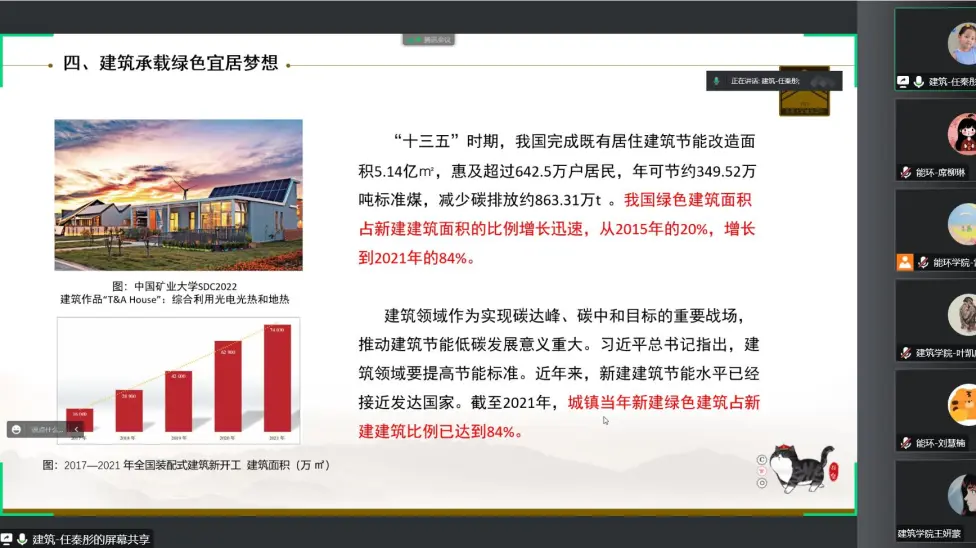 万博manbetx官网 的任秦彤和邱子倍同学向大家介绍了过去十年建筑行业的制度改革,走向世界的“中国建造”以及不断推进建设的美丽乡村和绿色建筑,并对未来的行业市场,发展要求及方向做了分析与展望。