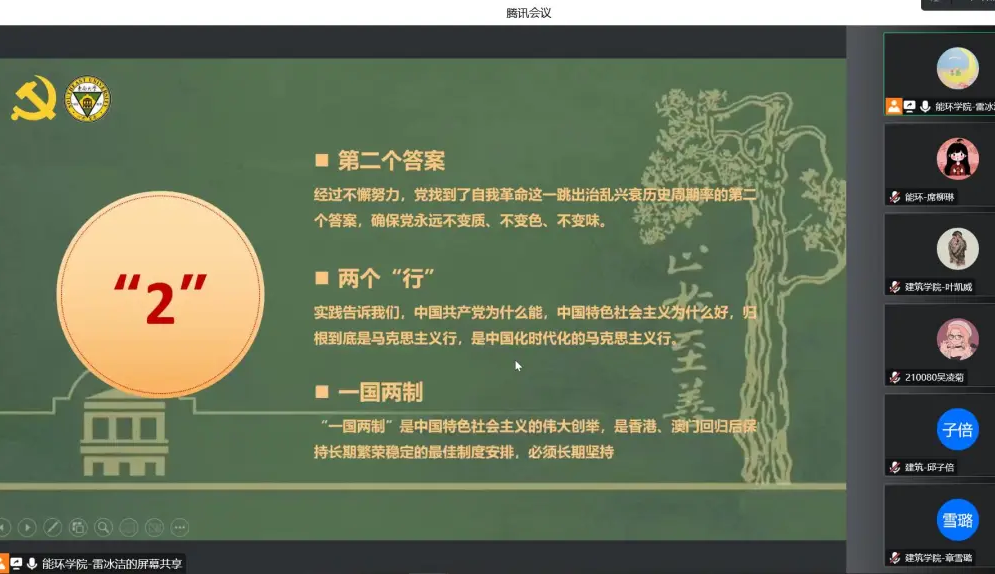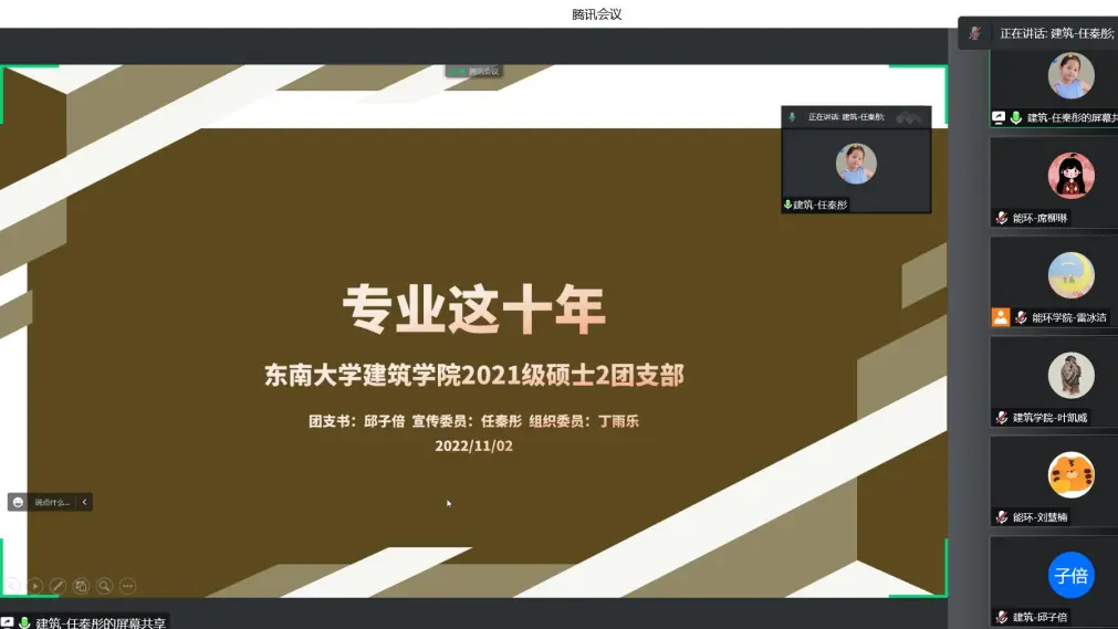 2022年11月2日,由能源与环境学院硕士生第10、11党支部主办,联合万博manbetx官网 建筑学硕士生五党支部、生医学院生物材料研究生党支部于线上开展“这十年”专业联合主题交流活动。本次活动旨在深入学习贯彻二十大精神、领悟二十大新征程、并鼓励党团班同学都积极参与到学校本轮教育思想大讨论中,结合时代背景,在不断深入学习交流中逐渐明晰自己想要成为怎样的人。