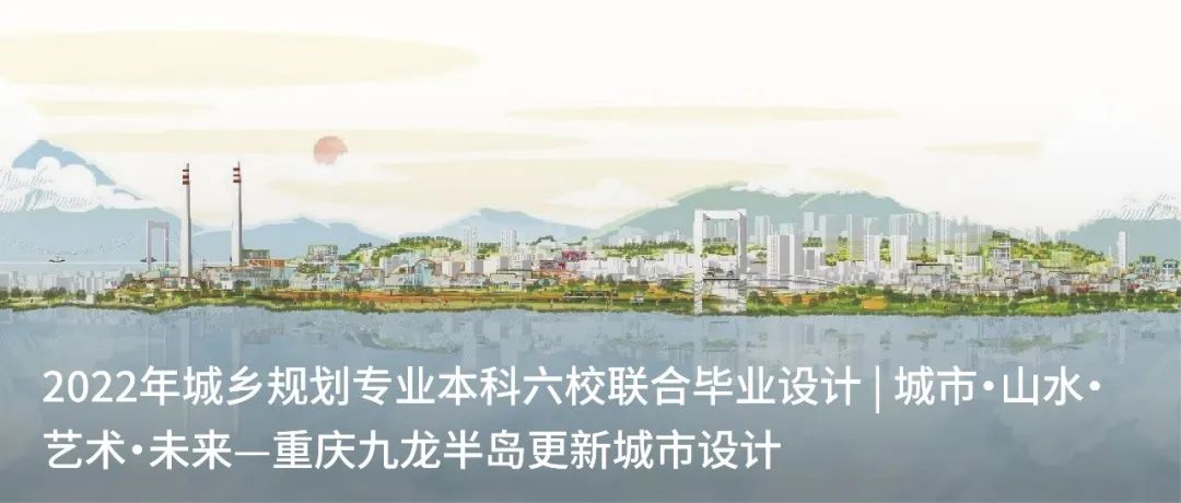 “城市·山水·艺术·未来—重庆九龙半岛更新城市设计”, 是由中国城市规划学会提供学术支持、重庆大学建筑城规学院承办的2022年城乡规划专业本科“六校联合毕业设计”课题。此设计聚焦于重庆市九龙半岛地区城市更新中的一系列矛盾,为解决空间问题、传承半岛特质、把握地区公众意识活跃、艺术基因突出的特色,依循双笔在九龙半岛的历史线索,将自下而上的公众参与和自上而下的宏观把控相融合,采用“渐进式·针灸式”的更新方式,探索疫情下的线上公众参与模式,提出“双笔共绘,无界艺岛”的设计主题,以生态、产业、人居与艺术为抓手的四大行动计划助力半岛发展。设计成果先后获得2022第八届中国人居环境设计学年奖城市设计类金奖、2022第十届TEAM20建筑与规划新人奖-优选奖(全球前十)。