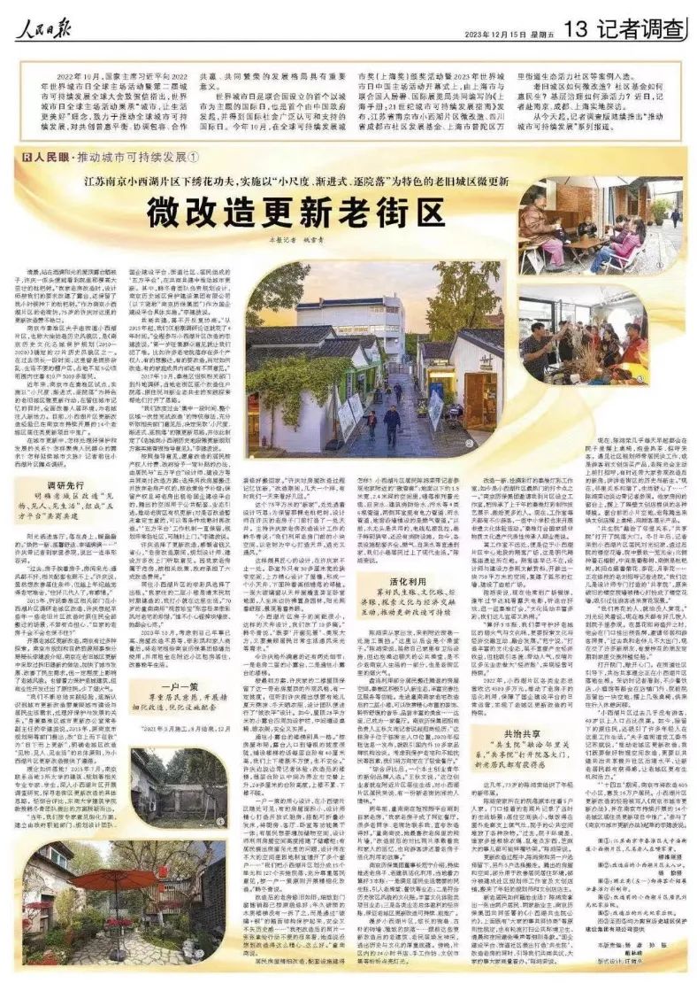 “‘十四五’期间,南京市将改造605个小区,惠及16万户居民。小西湖片区更新改造的经验被写入《南京市城市更新办法》,并在南京市持续开展的14个老城区居住类更新项目中推广。”参与了《南京市城市更新办法》起草的李建波说。