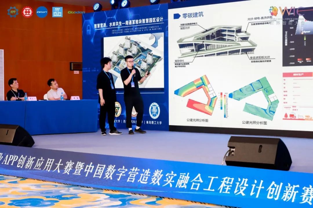 建筑业是我国实现双碳战略的重要领域之一,在碳达峰碳中和的“1+N”政策体系中,《2030年前碳达峰行动方案》、《“十四五”建筑节能与绿色建筑发展规划》等关键政策明确了建筑绿色低碳转型路径,建筑节能行业迈向低碳绿色发展将成为必然趋势,BIM技术作为建筑领域的一次革命,为建筑设计的"绿色探索"注入高科技力量。近日,由工业与信息化部举办的2023中国(天津)工业APP创新应用大赛颁奖仪式在天津举办。大赛是世界智能大会的重要赛事之一,以“夯实产业基础,推进新型工业化”为主题,聚焦国内重点领域,以推动工业技术软件化快速发展为主线。设置“汽车行业场景赛”、“数实融合工程设计创新赛”、“助力新型工业化发展赛”三大赛道。现场评审专家团队秉持公平、公正、诚实信用原则,经过严谨把关、提问质询、专业评估,最终遴选出一等奖3名,二等奖7名,三等奖11名。其中“数实融合工程设计创新赛”共3000余人,近200个团队报名参加,经过省赛到国赛历时半年的角逐,在不区分职业组和学生组的情况下最终遴选出全国一等奖1名,二等奖2名,三等奖3名。东南大学-西安建筑科技大学-青岛理工大学联队的参赛作品“智慧营造,水岸共生”荣获“数实融合工程设计创新赛”赛道,省赛学生组一等奖、国赛综合组三等奖。