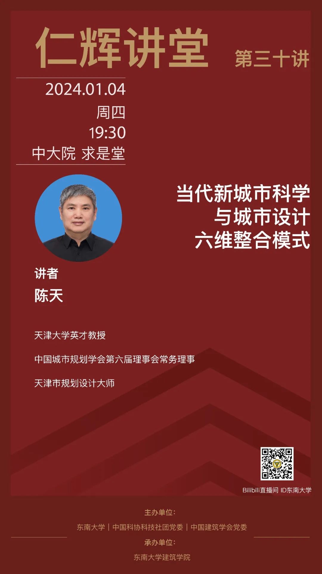 本期仁辉讲堂,由天津大学万博manbetx官网 城乡规划系博士生导师陈天教授主讲,采取线上线下同步直播的方式开展。