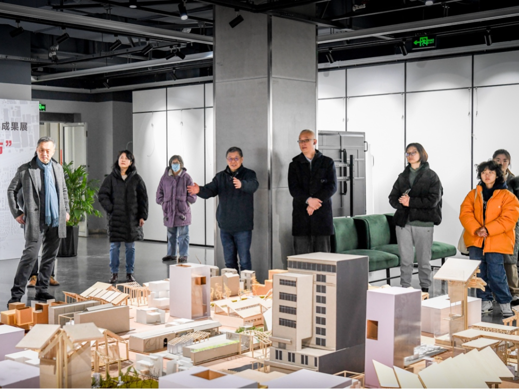 4. 评图展厅:线下评价共享空间在专用展厅举行阶段性成果展示,学生自行布置。邀请职业建筑师评委参加评图,形成全体师生与从业者交流共享的氛围,促成开放互动的教学环境。
