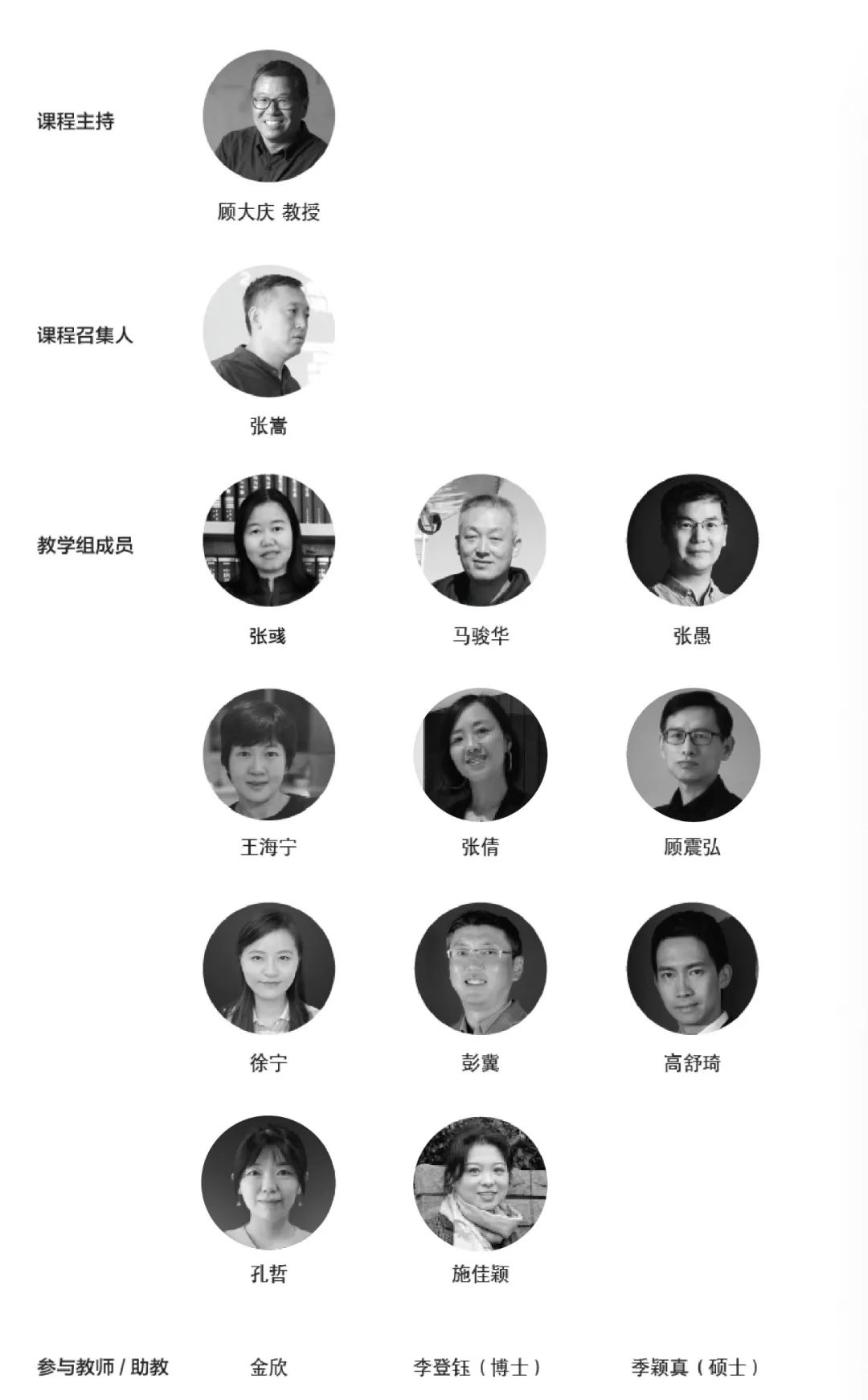 设计基础I-“现实城市”教学团队由课程主持教授、授课教师和研究生助教共同构成。课程主持为顾大庆教授。教学团队由万博manbetx官网 各系所共十余位教师组成,授课教师有着不同的年龄层次、学术背景和研究方向,在各自的领域有所专长。各课题教案由负责老师制定,并组织全体教师与助教集体备课、试做,确定教案具体内容。学期中定期举行教学研讨,根据学生反馈和作业成果,调整教学内容和进度安排。