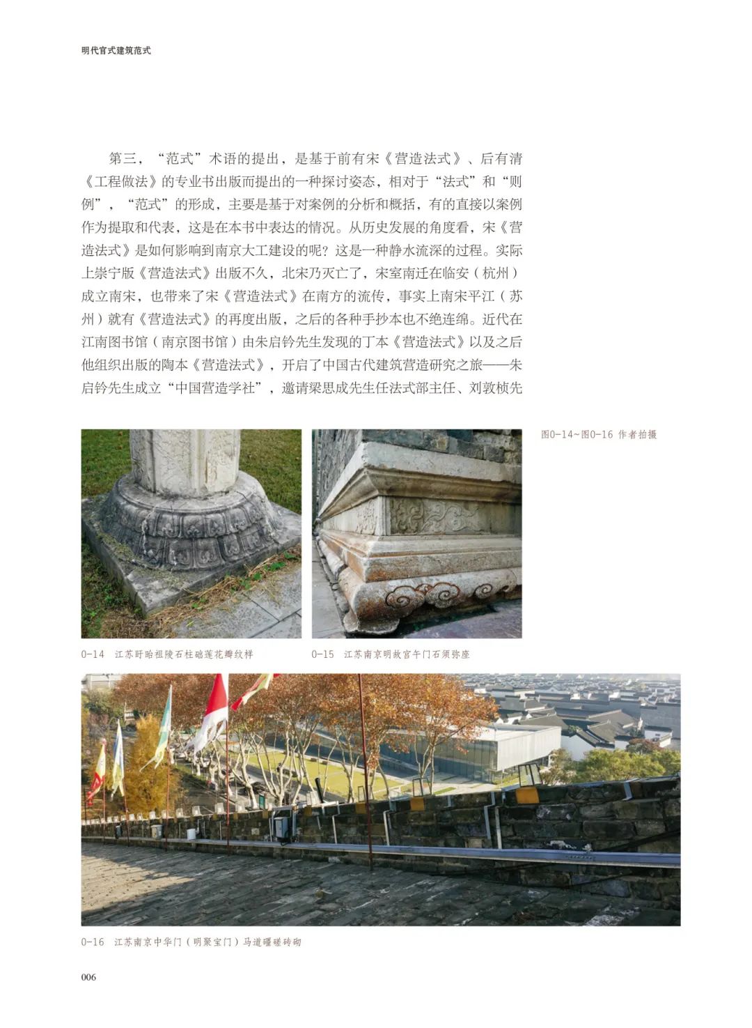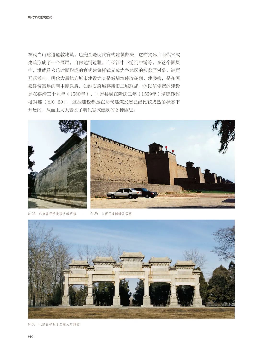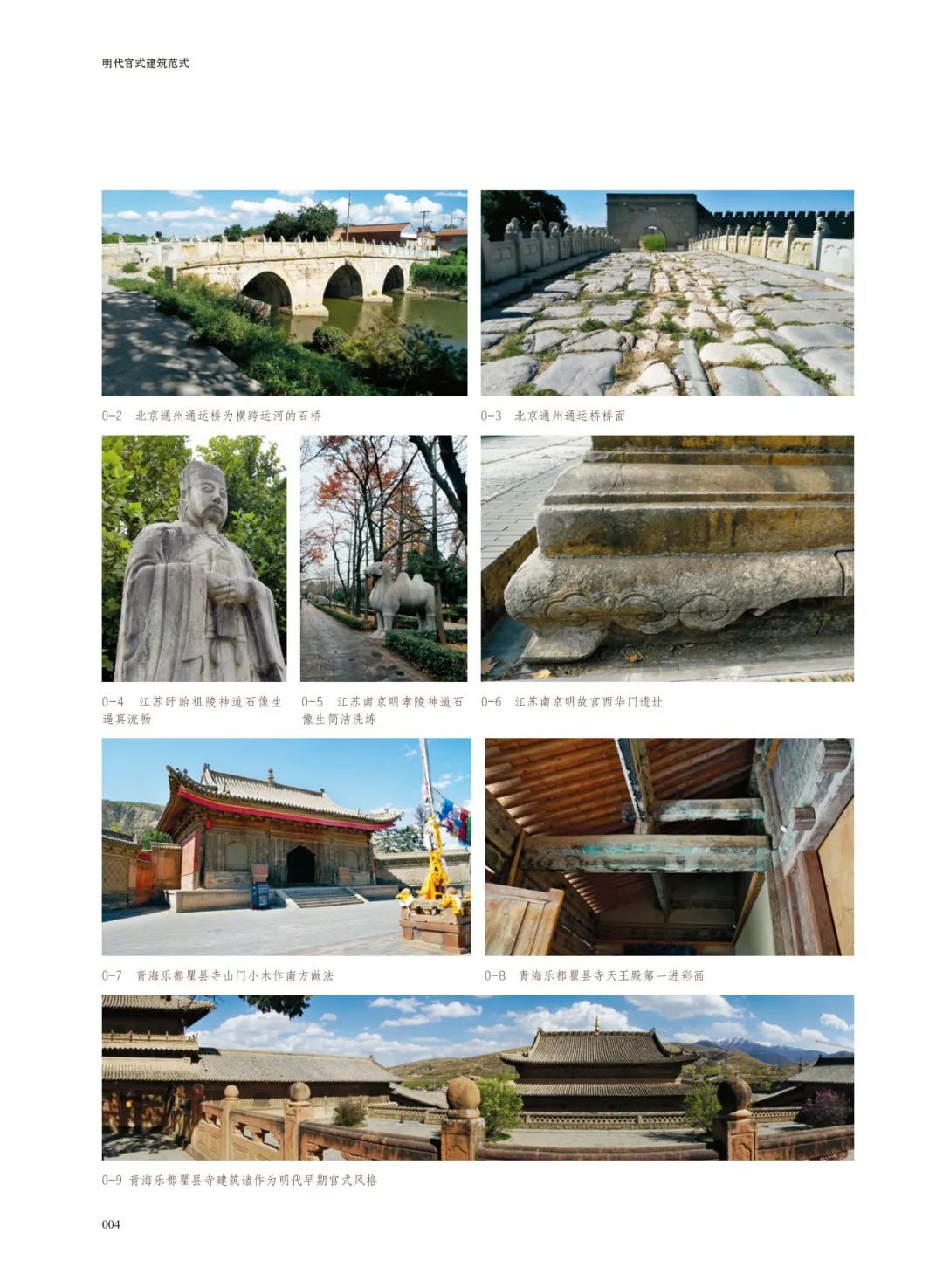著作者第一人潘谷西教授在四十余年前专攻元明建筑研究,出版有《中国古代建筑史·第四卷·元、明建筑》,之后深化开展“明代官式建筑范式”研究,因为他认为:明代官式建筑上承宋元,下启清代,在中国古代社会晚期建筑发展中具有非凡的转折意义。在宋《营造法式》和清《工程做法》之间,该著作的出版,不仅对完善中国古代建筑的认知和理解有重要的学术价值和补阙作用,也是深化《营造法式》传承和了解《工程做法》脉络的重要基础工作,还对当下古建筑修缮及其遗产保护有广泛的应用和实践价值。《明代官式建筑范式》对明代官式建筑营造和设计相关的6种作法进行了系统研究,具体内容为:大木作、彩画作、石作、砖作、琉璃作、小木作。除了有历史考证和表述之外,从实物中提取依据、总结规律、量化数据,或从典例中归纳范式,是该著作的研究特点,每种作法均附有精心绘制的大幅图版。可供建筑史学者、文物保护工作者、考古工作者、建筑师、美术爱好者等研读、查阅,也可供相关专业师生进行深入学习和设计参考。