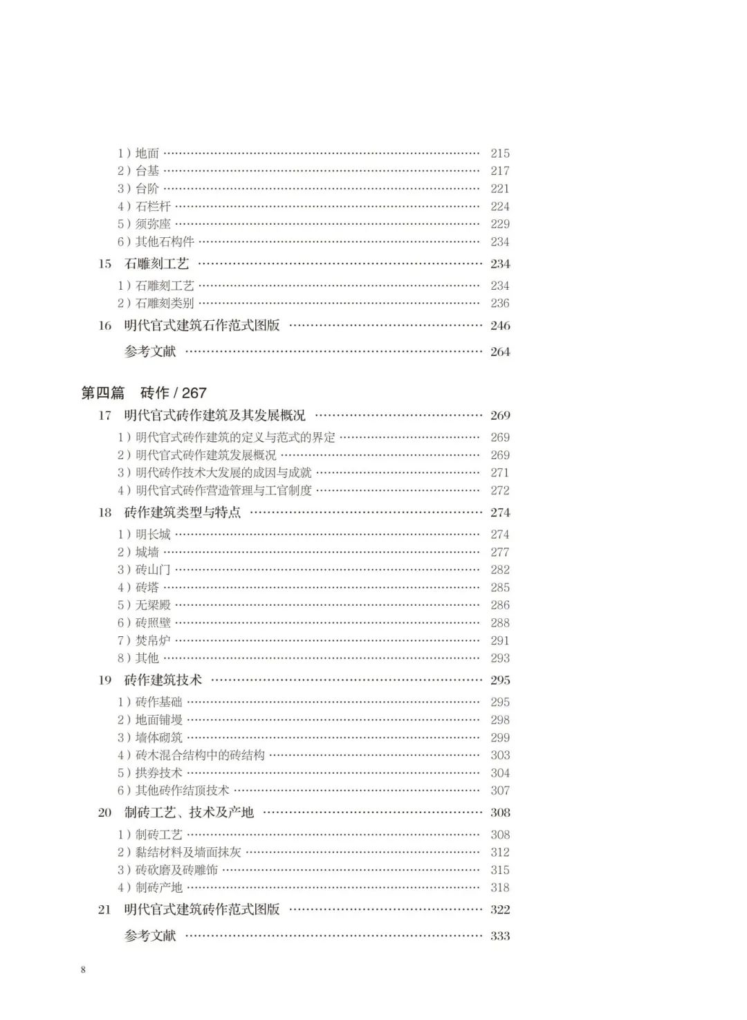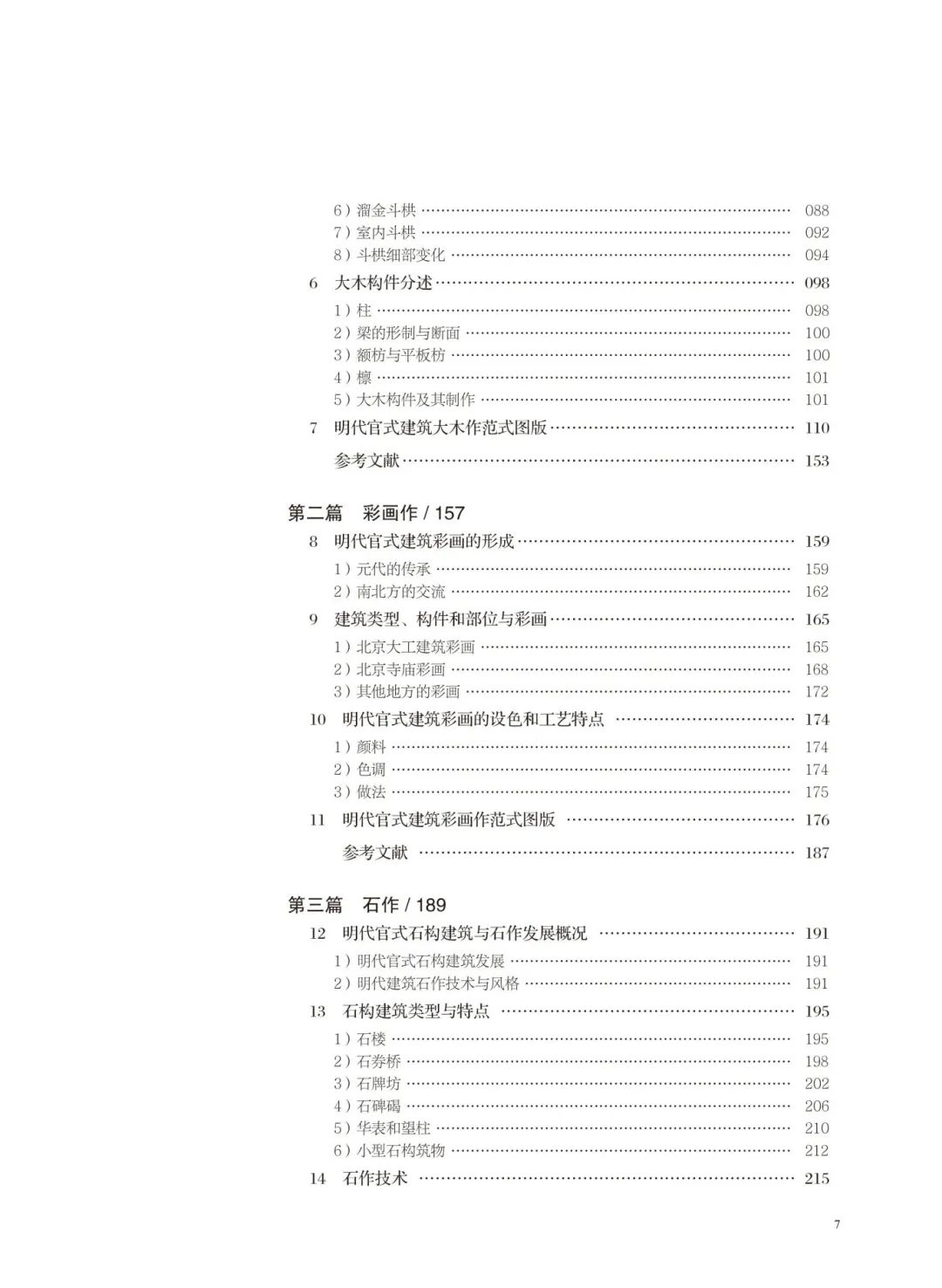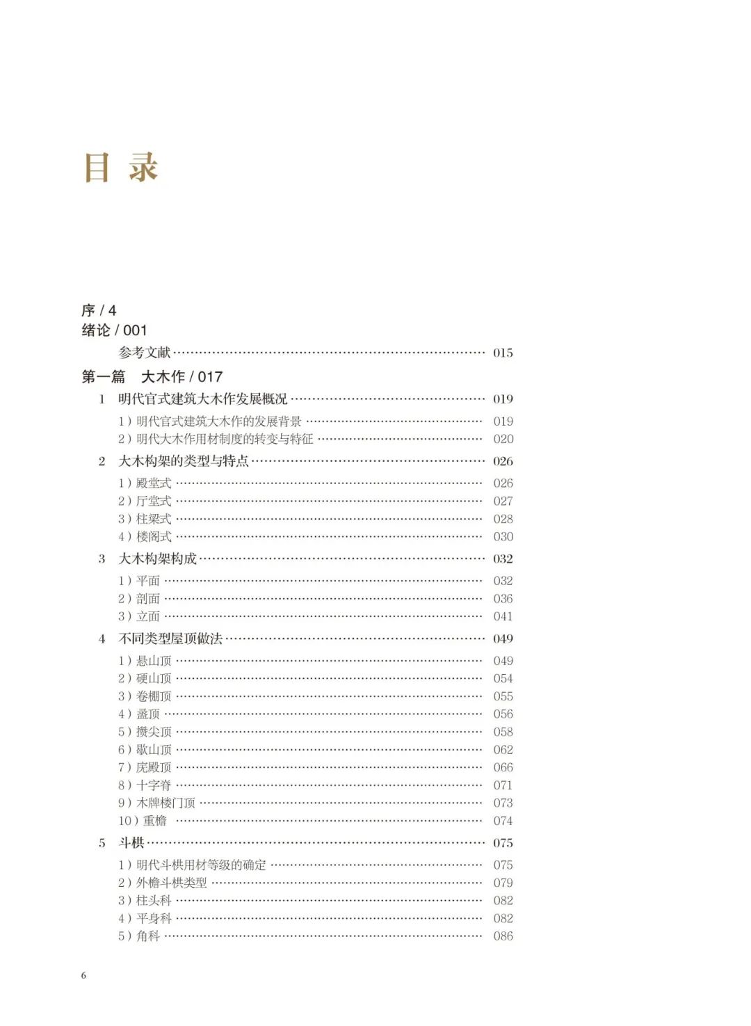 著作者第一人潘谷西教授在四十余年前专攻元明建筑研究,出版有《中国古代建筑史·第四卷·元、明建筑》,之后深化开展“明代官式建筑范式”研究,因为他认为:明代官式建筑上承宋元,下启清代,在中国古代社会晚期建筑发展中具有非凡的转折意义。在宋《营造法式》和清《工程做法》之间,该著作的出版,不仅对完善中国古代建筑的认知和理解有重要的学术价值和补阙作用,也是深化《营造法式》传承和了解《工程做法》脉络的重要基础工作,还对当下古建筑修缮及其遗产保护有广泛的应用和实践价值。《明代官式建筑范式》对明代官式建筑营造和设计相关的6种作法进行了系统研究,具体内容为:大木作、彩画作、石作、砖作、琉璃作、小木作。除了有历史考证和表述之外,从实物中提取依据、总结规律、量化数据,或从典例中归纳范式,是该著作的研究特点,每种作法均附有精心绘制的大幅图版。可供建筑史学者、文物保护工作者、考古工作者、建筑师、美术爱好者等研读、查阅,也可供相关专业师生进行深入学习和设计参考。