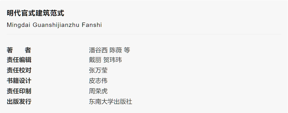 建筑历史团队积四十余年学术成果的重要著作,是对明代官式建筑展开的系统研究。潘谷西、朱光亚、陈薇、贾亭立、孙晓倩等几代东南学人薪火相传,持续深耕,方得著作问世。该书入选国家出版基金项目,东南大学出版社精益求精、全力支持,经多方力量共同努力,2022年12月出版。