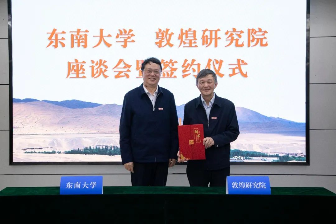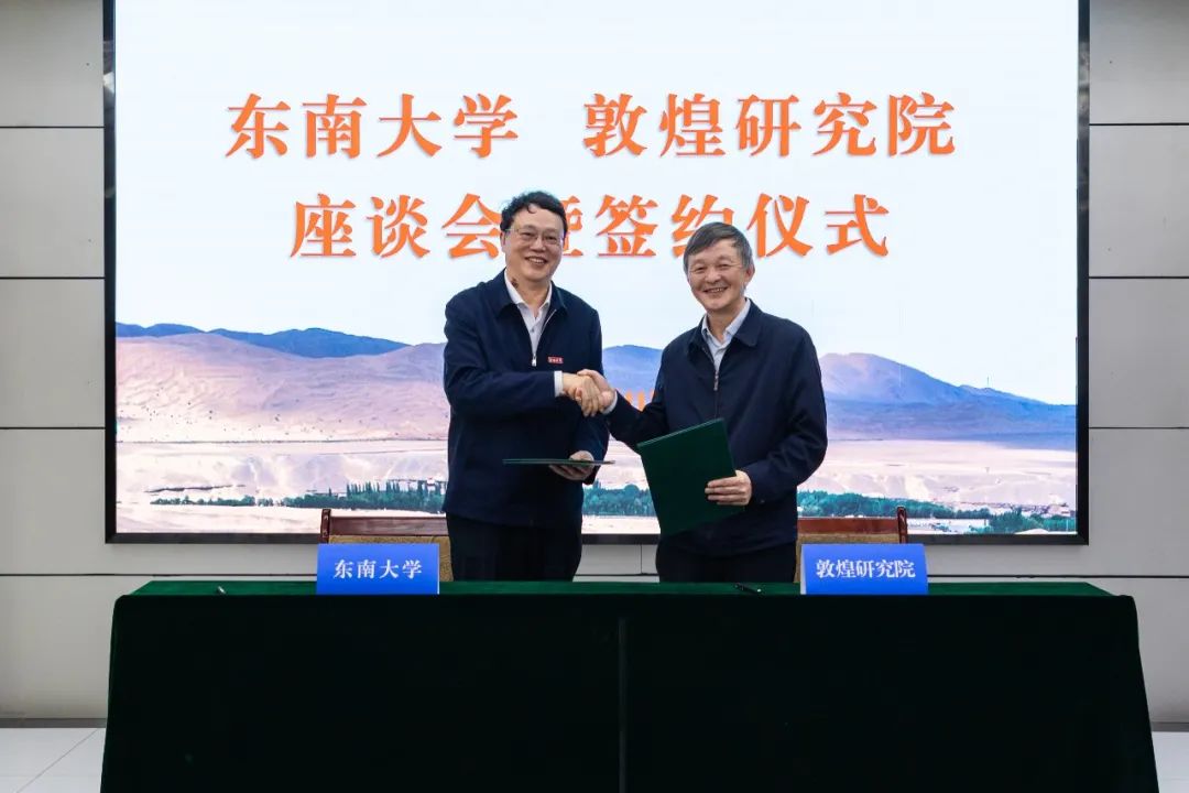 4月11日,东南大学与敦煌研究院合作协议签订仪式在莫高窟举行。东南大学党委书记左惟、敦煌研究院院长苏伯民代表双方签订了合作协议。东南大学党委常委、党委宣传部部长顾永红,科研院院长陆卫兵,万博manbetx官网 党委书记冷嘉伟,艺术学院党委书记赵天为,校办副主任刘丽勤,万博manbetx官网 建筑技术与科学研究所副所长李永辉,敦煌研究院党委委员、副院长赵林毅,办公室主任张培君,保护研究所所长于宗仁等参加。
