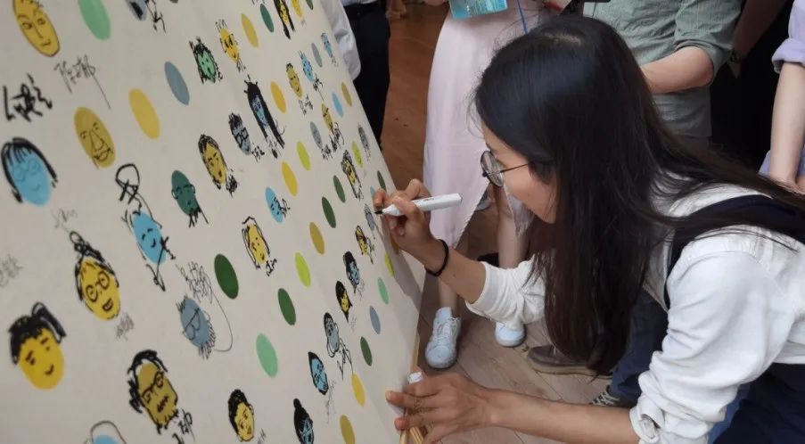 本次活动还充分体现了建筑、规划、景观专业校友们的创新力和艺术性,12级熊定伊设计了春意盎然的视觉设计、卡通趣致的邀请函、漫画方式签到的手绘画板。