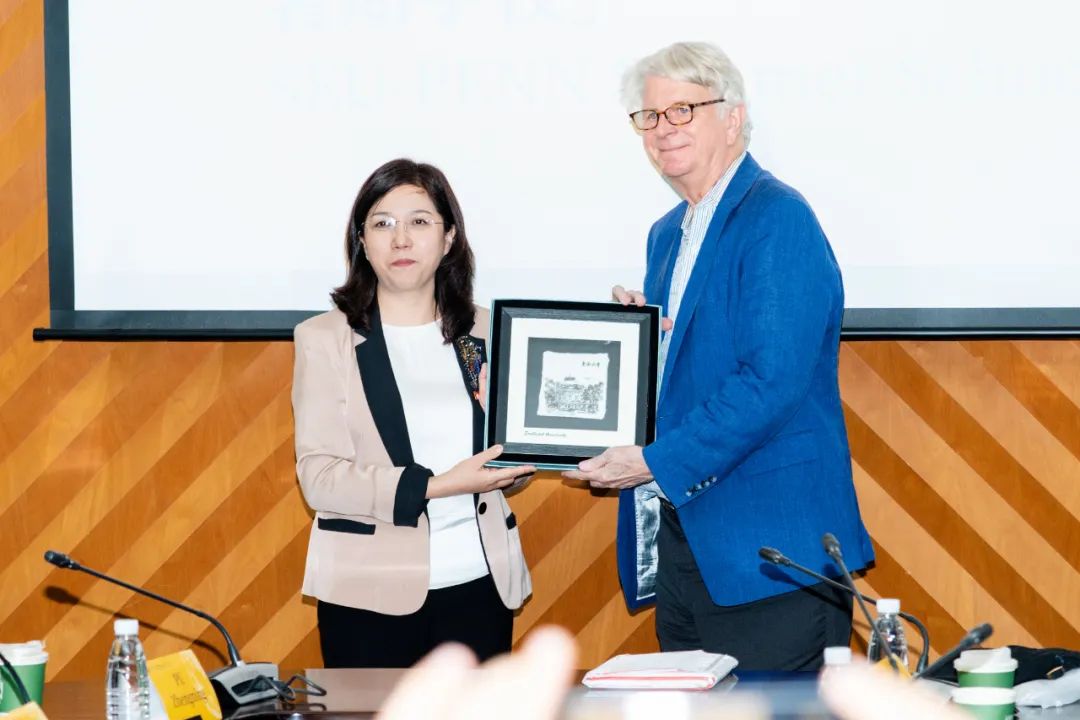 黄如校长在开营仪式上讲话并与宾夕法尼亚大学韦茨曼设计学院院长Steiner教授互赠礼物
