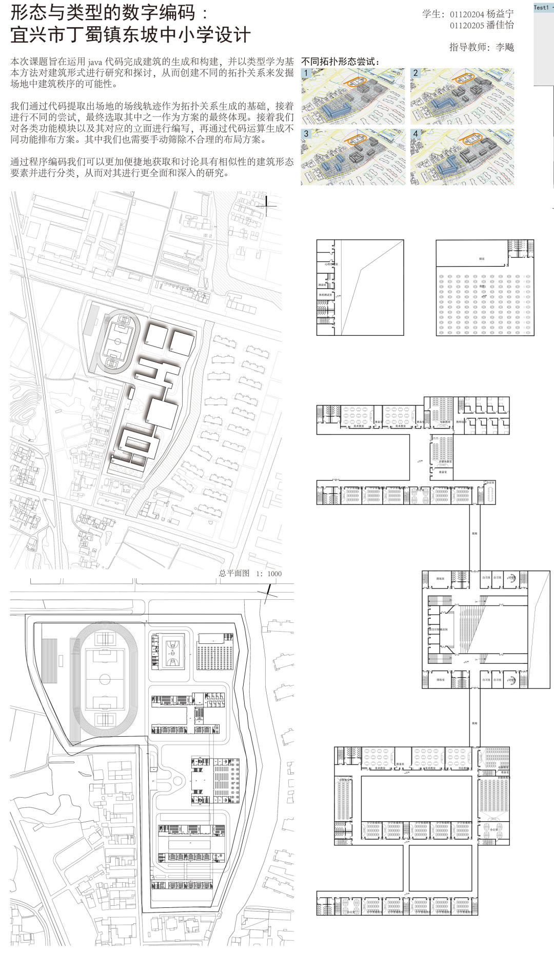 当今,数字生成设计、AI大模型、网络平台等技术的更新发展有目共睹,正在逐步改变建筑学科领域的设计模式、教学模式和交互模式。本次四年级课程设计以“形态与类型的数字编码”为主题,以宜兴市丁蜀镇东坡中小学作为设计场地为例(学生可根据设计目标选择其他场地),引导学生探索中小学建筑设计中形态与类型问题的可计算性,采用计算机编程的技术手段解决平面布置和立面生成等具体设计问题。