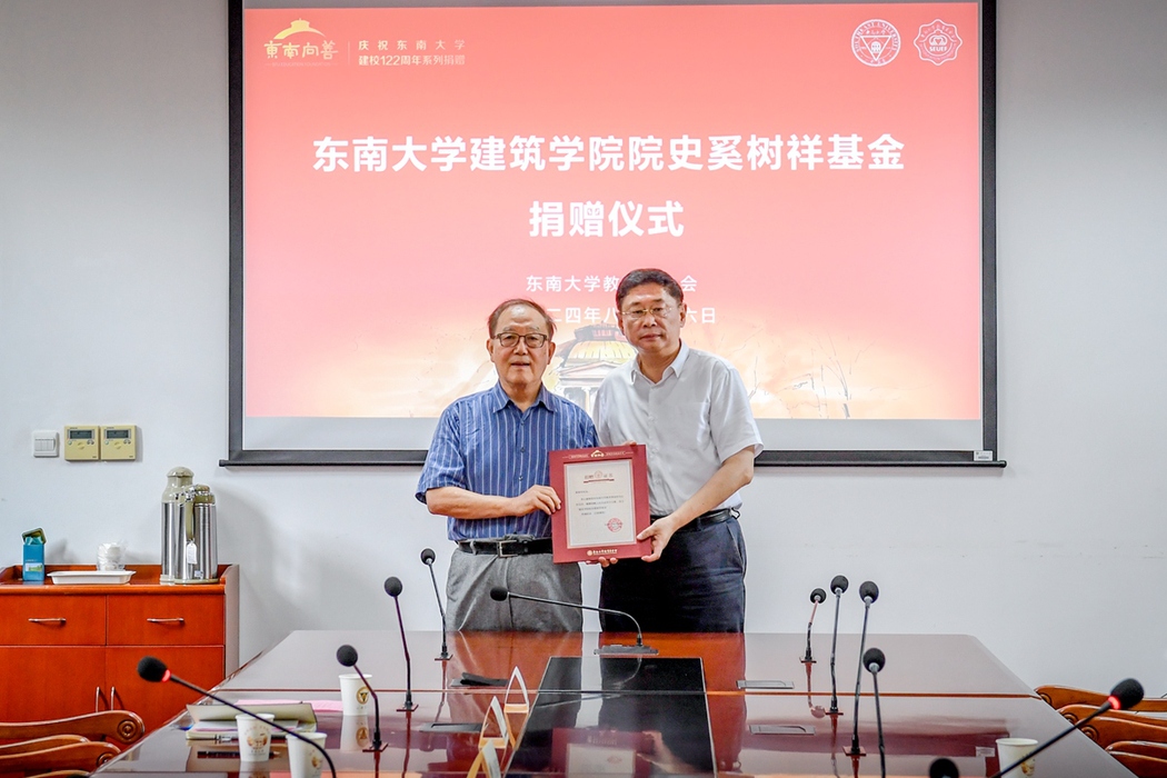 【东大新闻网8月29日电】(通讯员 王玺杰)8月26日,东南大学“万博manbetx官网 院史奚树祥基金”捐赠仪式在四牌楼校区举行。东南大学原万博manbetx官网 教授、华汇工程建筑设计有限公司创始人奚树祥,东南大学副校长、教育基金会常务副理事长黄大卫,万博manbetx官网 以及东南大学教育基金会相关负责人出席。