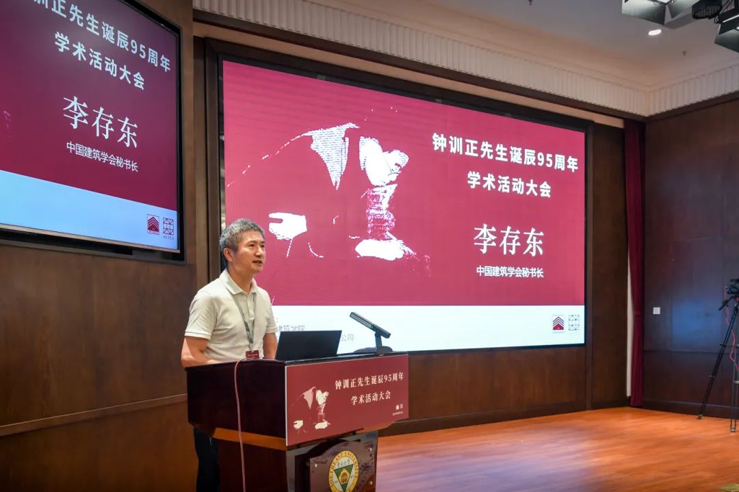 左惟书记在致辞中表示,钟训正先生是新中国培养的最具代表性的建筑学者,他的学养修为是新一代建筑学师生的典范和榜样,宣传钟先生的治学态度和学术贡献,弘扬钟先生的教育理念和学术思想,具有十分重要的现实意义。江苏省住建厅副厅长金文、中国建筑学会秘书长李存东、中国城市规划学会监事(原副理事长)张泉、中国风景园林学会秘书长左小平、中国勘察设计协会副秘书长王漪先后致辞。张锦秋院士、马国馨院士、何镜堂院士、程泰宁院士、黄卫院士、崔愷院士,王建国院士,常青院士、孟建民院士、庄惟敏院士分别以书面、视频和现场的形式作了发言,对钟训正先生在我国建筑教育、建筑学科和建筑设计行业发展的引领作用和所做的杰出贡献给予高度评价,向钟训正先生谦逊诚朴、严于律己、宽厚待人、淡泊名利、提携后学的高尚品格致以崇高的敬意。齐康院士、王瑞珠院士、王小东院士、缪昌文院士、刘加平院士、段进院士、黄锡璆大师等钟先生的老同事、老朋友和学生也通过不同方式表达对钟训正先生的敬意之心和缅怀之情,并祝学术活动取得圆满成功。最后,钟训正先生的女儿、南京长江都市建筑设计院有限公司原总建筑师钟容发表感言。