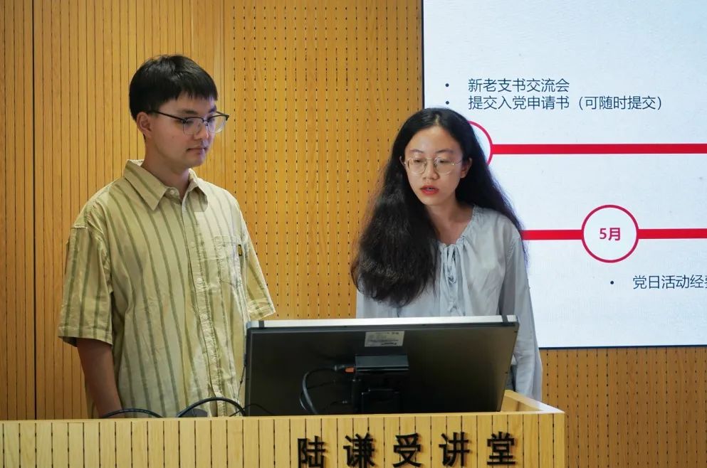 紧接着党建助手徐沁园和徐耀新同志通过一条清晰的时间线,对党支部一年的工作进行了系统梳理。