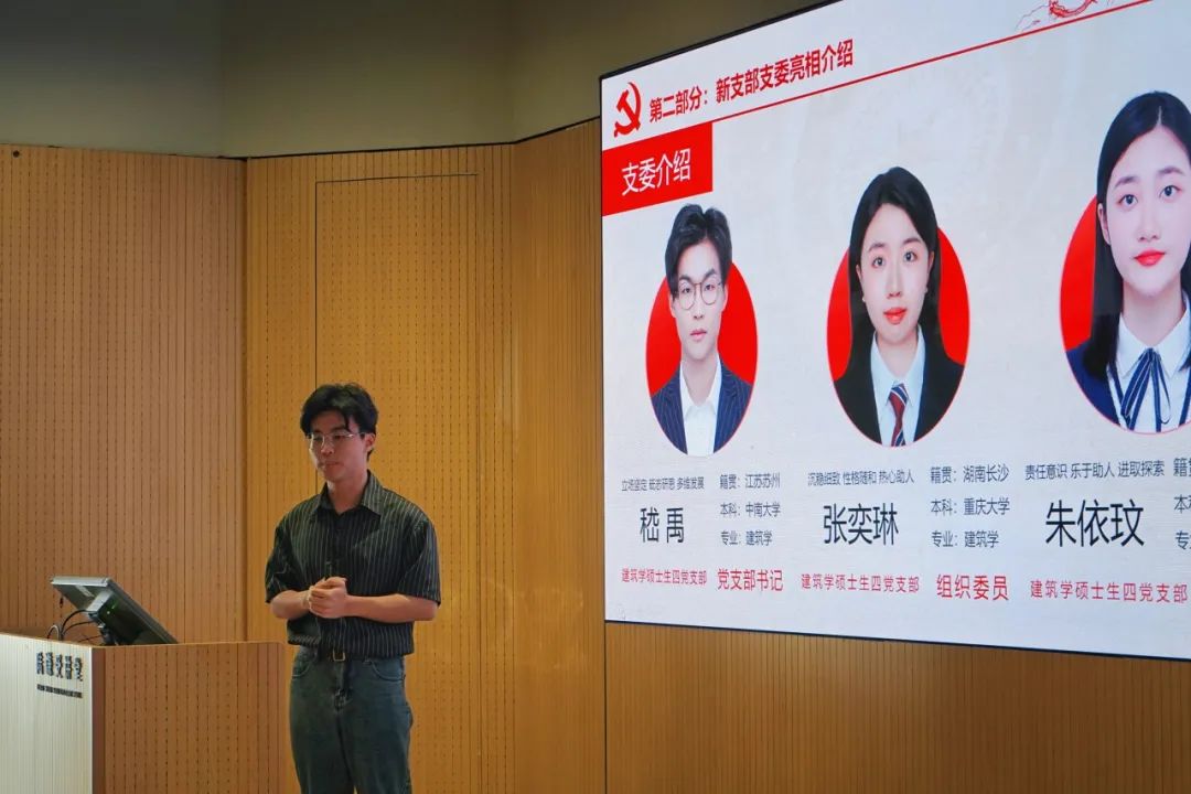 接着五个硕士生党支部与两个本科生党支部的新支委们通过简短的自我介绍,向大家展示自己的风采以及对未来支部建设的构想。