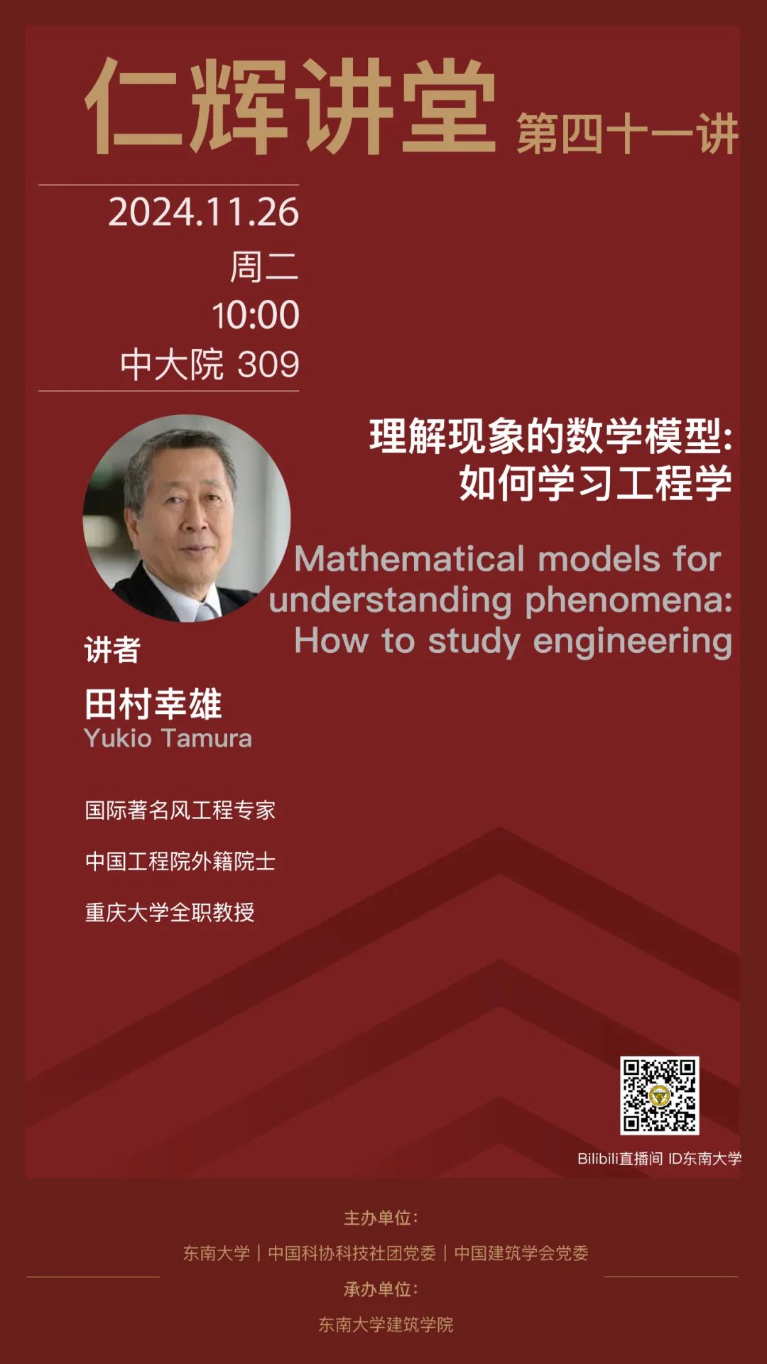 本期仁辉讲堂,由国际著名风工程专家,中国工程院外籍院士田村幸雄(Yukio Tamura)教授主讲,采取线上线下同步直播的方式开展。