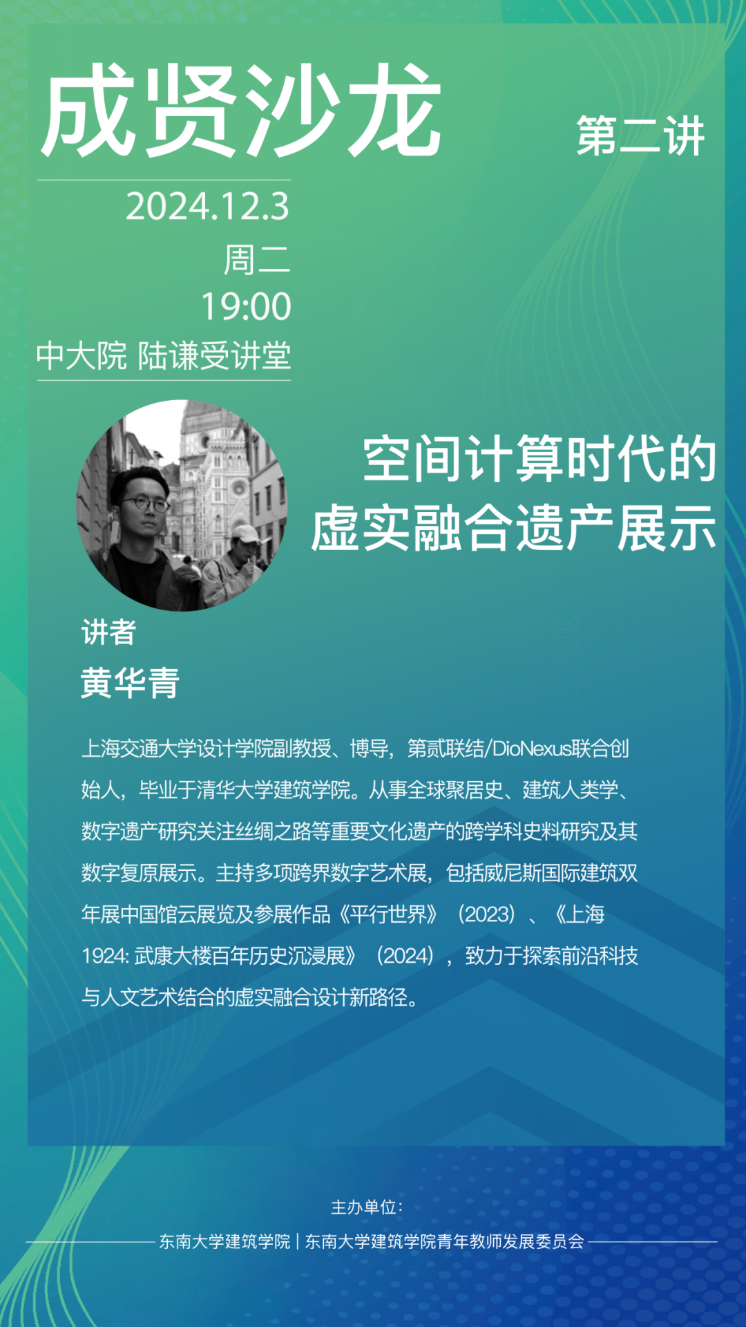 青年是学术传承与开拓创新的希望和动力。2024年是东南大学“学术年”,万博manbetx官网 特开设“成贤沙龙”,长期延请青年学者分享见解,探讨前沿,激发互动,促进交叉,推动建筑学科及交叉领域的交流创新与多元发展。
