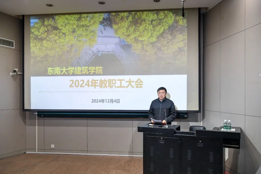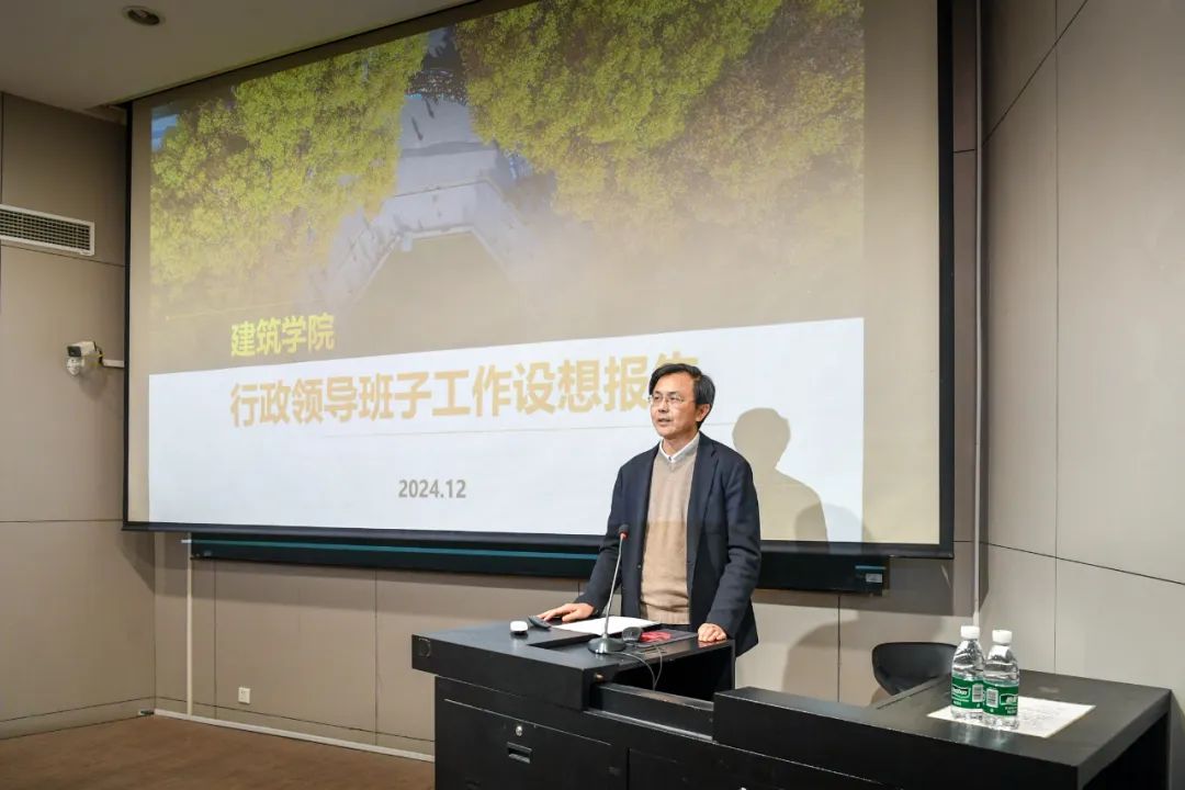 接着,张彤院长代表新一届行政领导班子从万博manbetx官网 学术战略、改革任务与行动举措等方面做工作思路报告。他指出,要坚定改革决心,进一步明晰学科的本体内核和价值贡献,优化行政架构,加强相关方向师资队伍建设;改革建筑类专业人才培养体系和学制设置;全面应对数智科技,尤其是人工智能带来的机会和挑战,重塑课程结构、知识体系和教学模式,尽快完成传统学科群的转型。随后,张彤院长进一步从六个方面阐述了改革任务和行动措施,分别是:明辨学科发展支柱性方向,推动交叉融合,推进学科建设;强化设计作为学科核心,全面提高设计教学和设计研究水平;改革人才培养体系,提高人才培养效率;系统谋划科研布局,创设科技创新机制;坚持国际化办学特色,由“示范”成为“日常”;凝聚东南学派学术精神,提升学院文化建设。