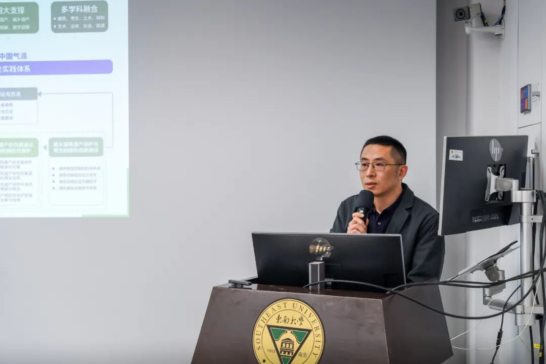 唐芃副主任主持自主课题汇报交流环节。她强调了自主课题研究在推动建筑遗产保护中的创新性和重要性,鼓励与会者分享各自的研究成果与经验,促进思想碰撞和合作。4位承担自主课题的东南大学青年学者对各自的研究内容和进展进行了汇报和分享。