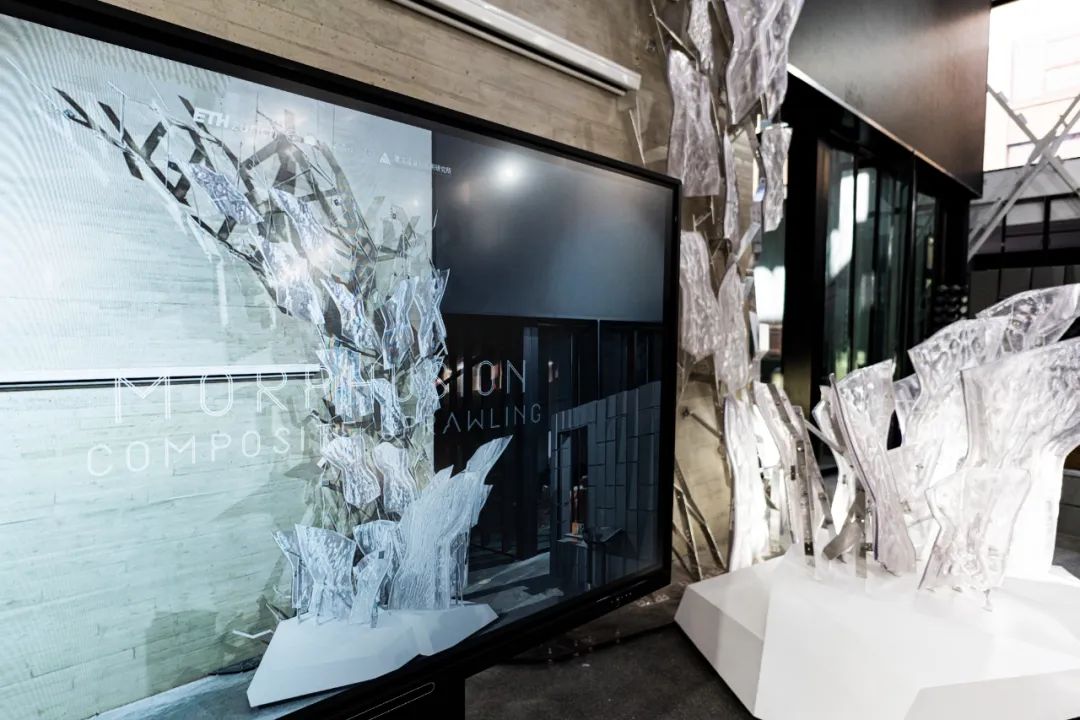 该项目是一座室内永久展示性建筑构造装置,于2024年在东南大学与苏黎世联邦理工大学合作交流四十周年学术研讨会上揭幕并投入使用。项目全称“形态融合:复合蔓生”(Morphusion: Composite Sprawling),旨在探索人工智能、复杂算法、机器人增材建造及混合现实技术在生成式建筑设计中的跨领域融合与协同应用。