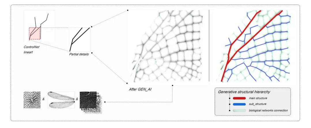 This installation surpasses traditional architectural constraints in both technology and form. Through the integration of complex structural systems, refined detailing, and multidisciplinary approaches, it demonstrates the potential of generative design for spatial and tectonic innovation. Moreover, by synthesizing biomimicry with artificial intelligence, the project envisions a future of symbiotic development among humanity, nature, and technology, offering valuable perspectives and practical pathways for advancing architectural tectonics.