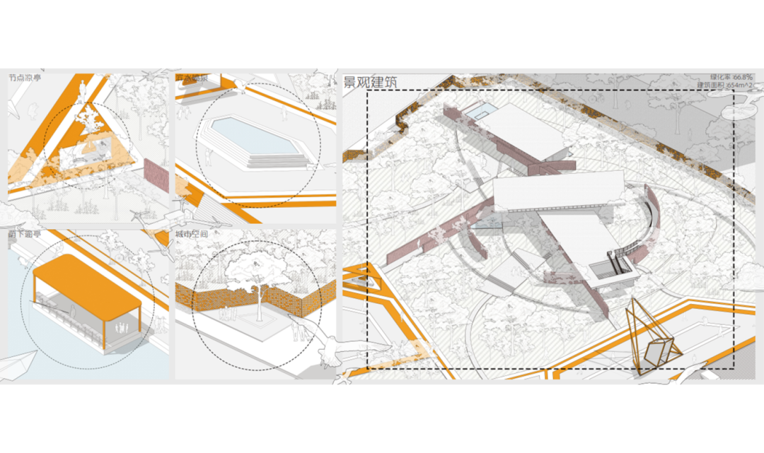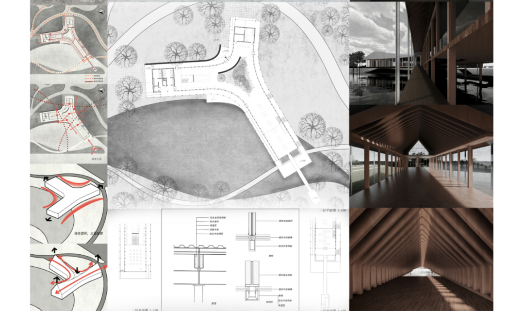 2. 塑造景观场域:掌握场地-空间-建筑-结构-材料联动深化设计与表达的能力。思考如何提炼场地特征并表达出来,如何让景观设施与建筑藏与显,并且尺度合宜,材质和谐,与环境相得益彰;