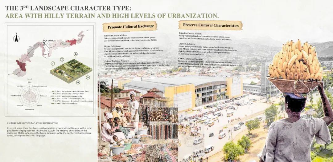 本项目立足新时代中非命运共同体共建战略,聚焦坦赞铁路的激活更新与可持续发展需求,系统开展了坦赞铁路景观特征解析与活化更新研究。项目针对坦赞铁路沿线生态基底退化、空间效能衰减、文化资源利用不足、社区凝聚力下降等问题,构建了“生态修复-文化振兴-技术赋能-空间优化”多维更新框架。研究集成多光谱遥感、数字地形模型(DTM)、数字表面模型(DSM)等技术手段,构建涵盖2大类11项94子项指标的自然-人文景观特征数据库。通过无监督聚类算法实现了区域内景观特征的智能识别与类型解析,划定了10类景观特征类型区域,并提出针对性更新策略。本项目成果为坦赞铁路沿线绿色基础设施建设提供了风景园林专业研究范式与技术支持,为中非基础设施合作项目创建了可复制的数字化决策路径。