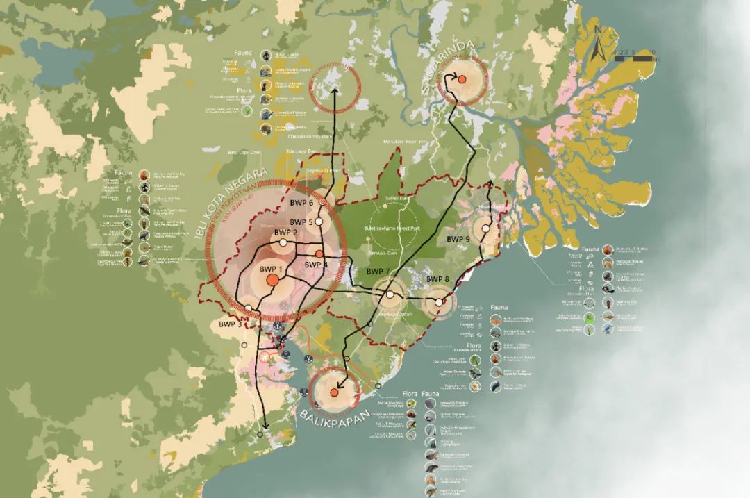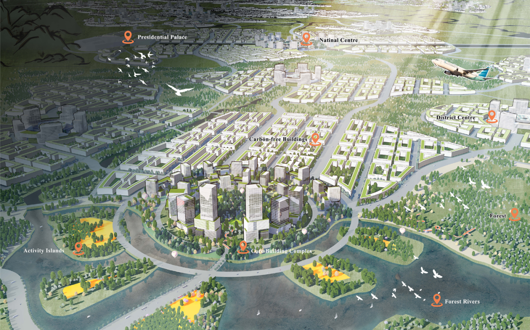 印度尼西亚为应对雅加达地面沉降、生态危机与区域失衡,2019年启动迁都计划,在东加里曼丹潮汐河口打造容纳200万人口的"智慧森林城市"——努桑塔拉。项目需在现棕榈种植园基底上实现70%土地保育为生物多样性丛林,构建全球首个热带雨林-都市共生系统。