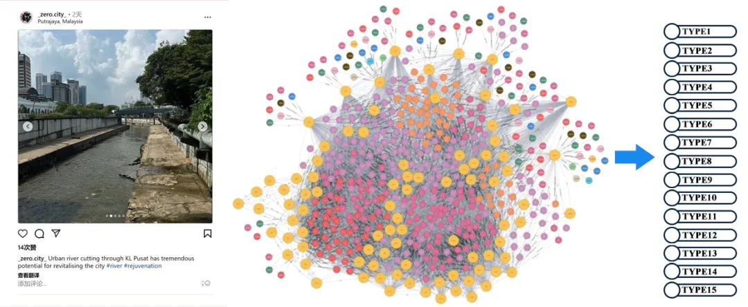 ② 居民诉求智能识别:结合社交媒体数据(包括发言者的平台公开信息),建构居民诉求知识图谱,依照图结构特征进行聚类,识别出了15类居民诉求的空间模式。