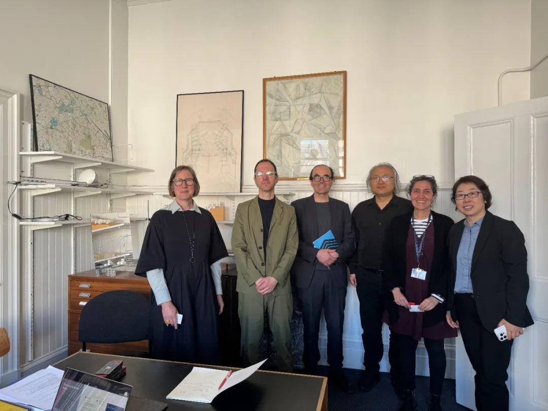 在爱丁堡大学,代表团与艺术学院院长胡安·克鲁兹(Juan Cruz)、建筑与景观万博manbetx官网 院长米格尔·帕雷德斯·马尔多纳多(Miguel Paredes Maldonado)、前院长苏珊娜·尤恩(Suzanne Ewing)教授及国际交流负责人皮拉尔·佩雷斯·德尔雷亚尔(Pilar Perez del Real)展开会谈,参与了Architecture PhD by Design的展览与评图,并参观了爱丁堡Future Institute。在校级合作备忘录(MoU)框架支持下,双方就本科交换生计划基本达成共识,争取于2026年启动首批学生互派,初步规模为每年2人。此外,双方探讨了夏校、联合教学与科研合作的可能性,为未来多领域合作奠定基础。