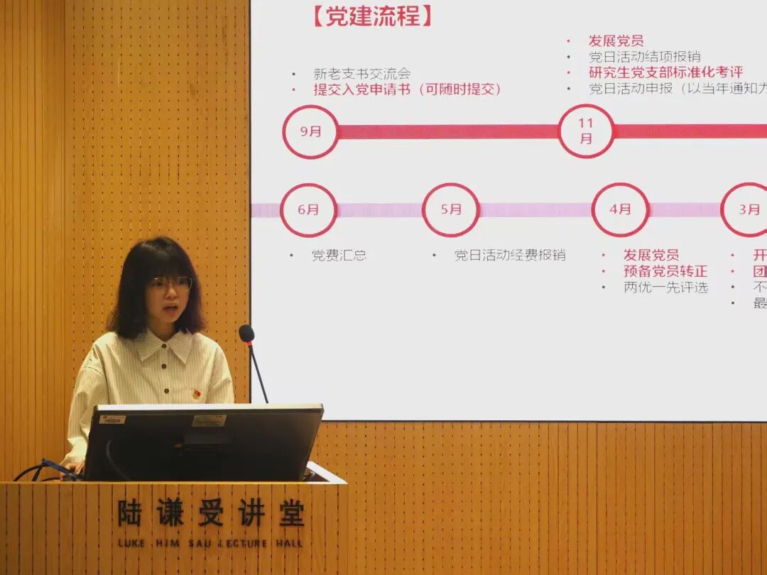 党建助手负责人吴静怡同学聚焦 “党支部的一年” 展开讲解。通过一条清晰的时间轴,系统梳理党支部一年关键节点工作,让新支委直观理解支部工作的连续性与阶段性,避免 “无头绪、打乱仗”。