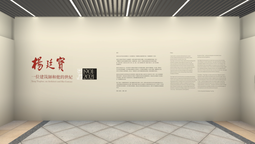 本次展览被命名为“一位建筑师和他的世纪”,为了在有限的空间中呈现这一百年,将杨廷宝先生丰富的建筑创造及人生经历、近代中国建筑现代化的探索历程呈现的更有深度,原展览录制了近20个视频,通过不同专家学者的解析呈现更加详细的作品解读和思想内涵的延伸;二是从杨廷宝先生的作品出发,通过建筑模型以及图纸,以追溯杨廷宝先生在建筑创作过程中的思想和方法。线上VR展厅也一并整合了这些资源,并附上详细说明与解说词,让观者更细致、更全面的了解这位建筑师和他的世纪。